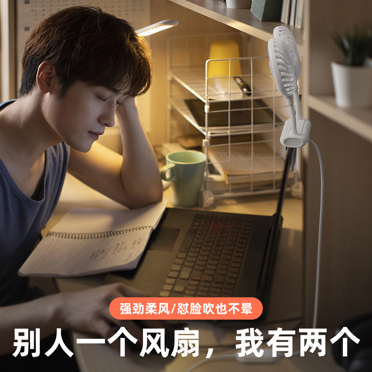 双头挂屏小风扇电脑屏幕夹扇夹子式办公室桌面制冷神器学生宿舍床上小型usb有线电扇大风力超静音吹睫毛美睫