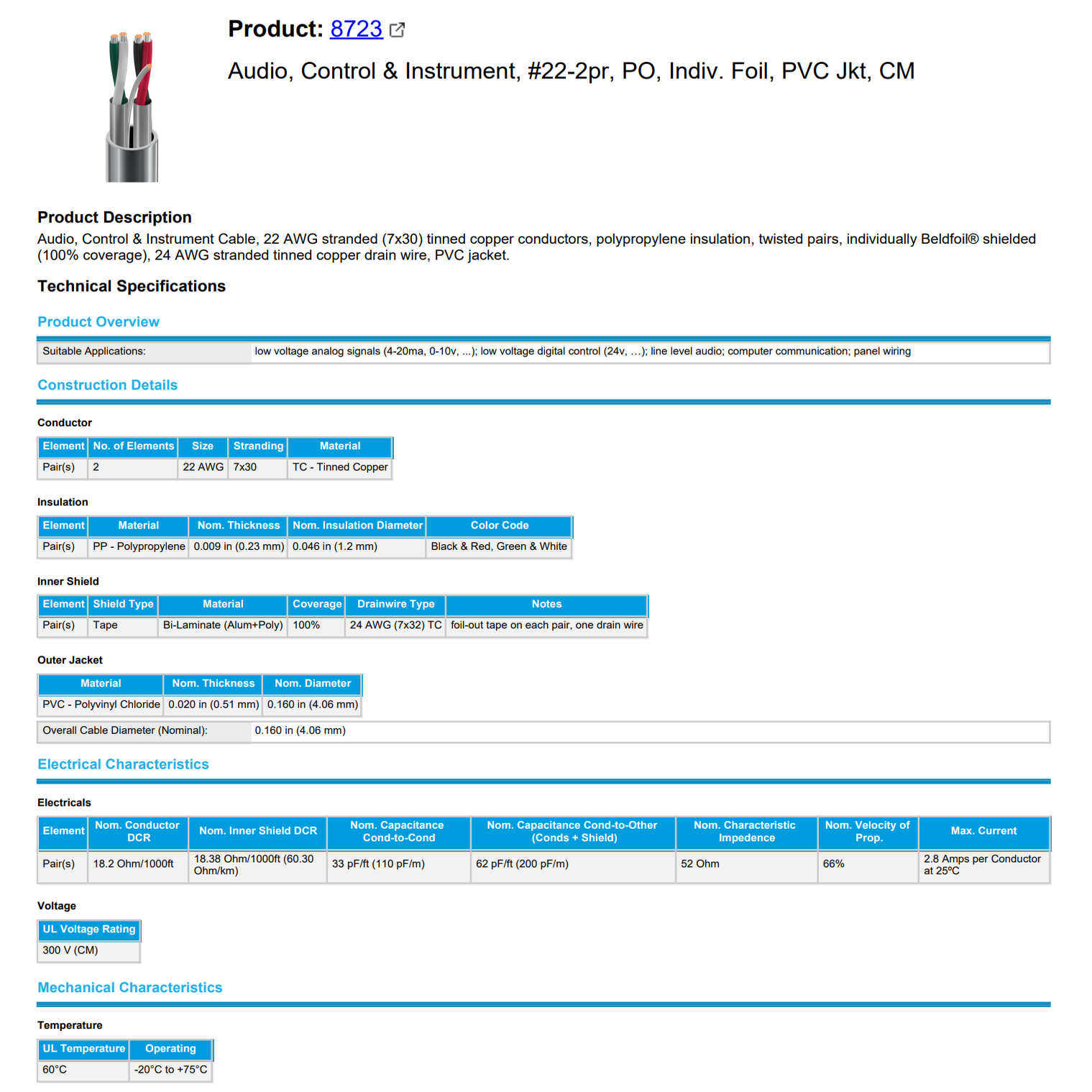 美国BELDEN百通8723四芯双绞音频专用信号线控制线 USB声卡线散线