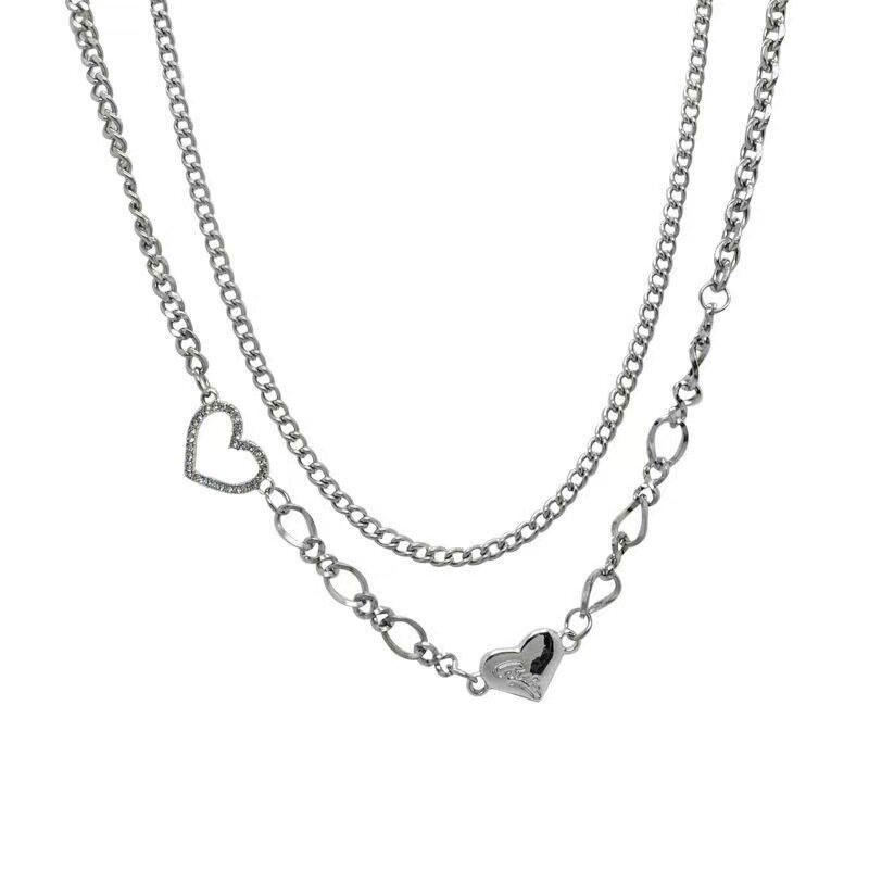辣妹项链女高级设计感小众双层T恤链锁骨链气质甜酷配饰颈链爱心