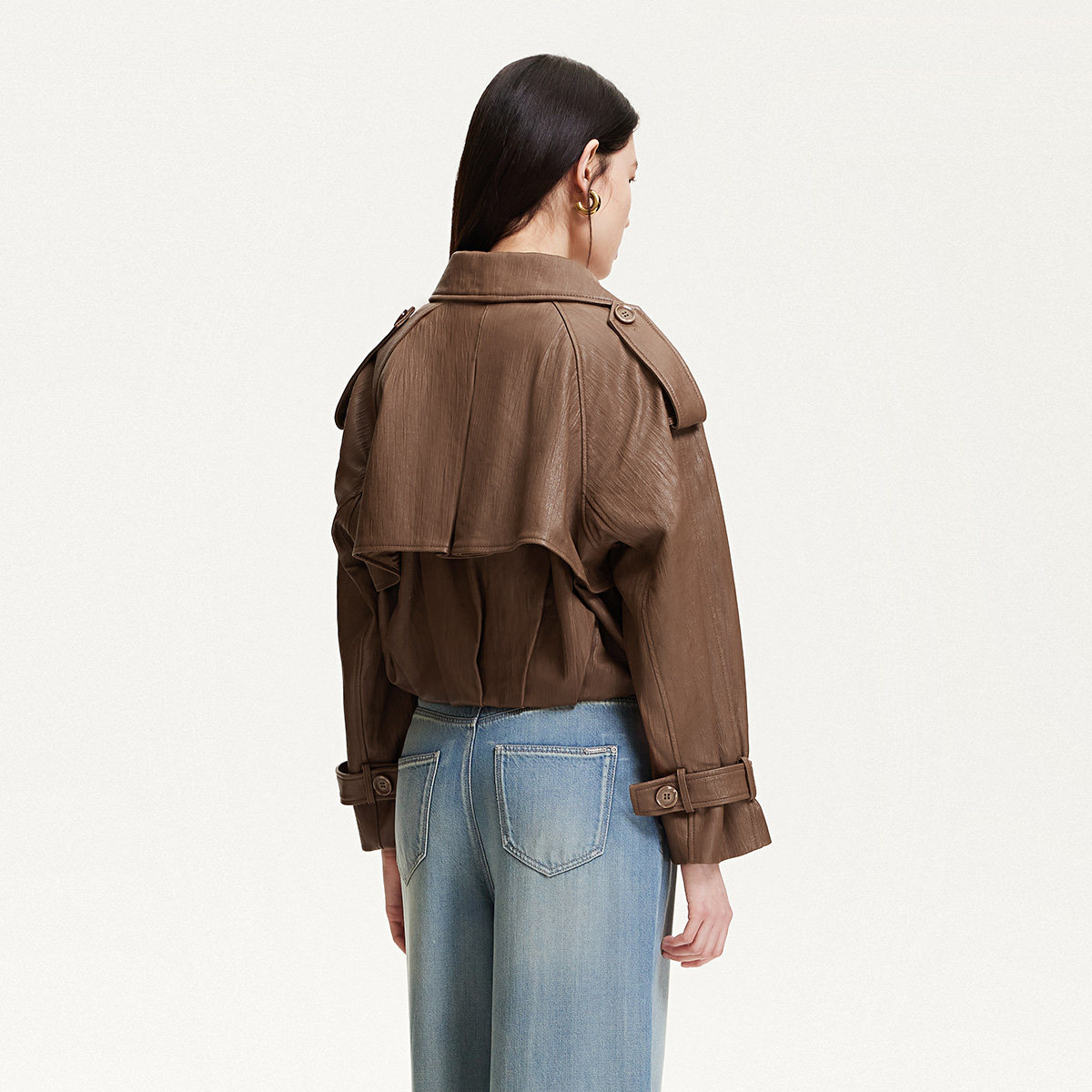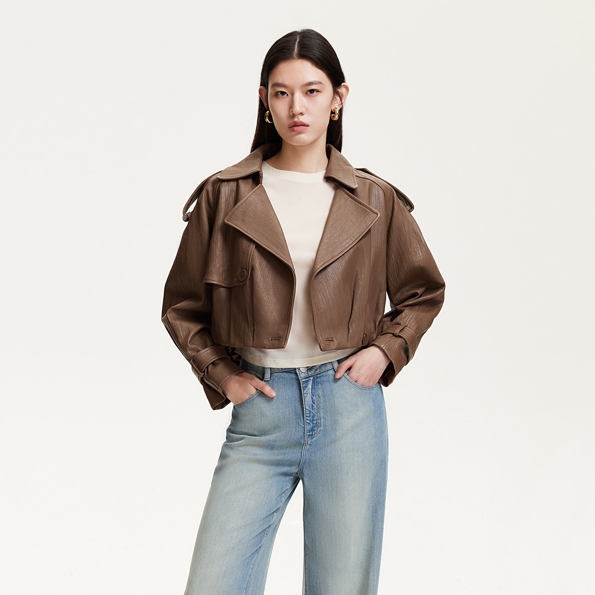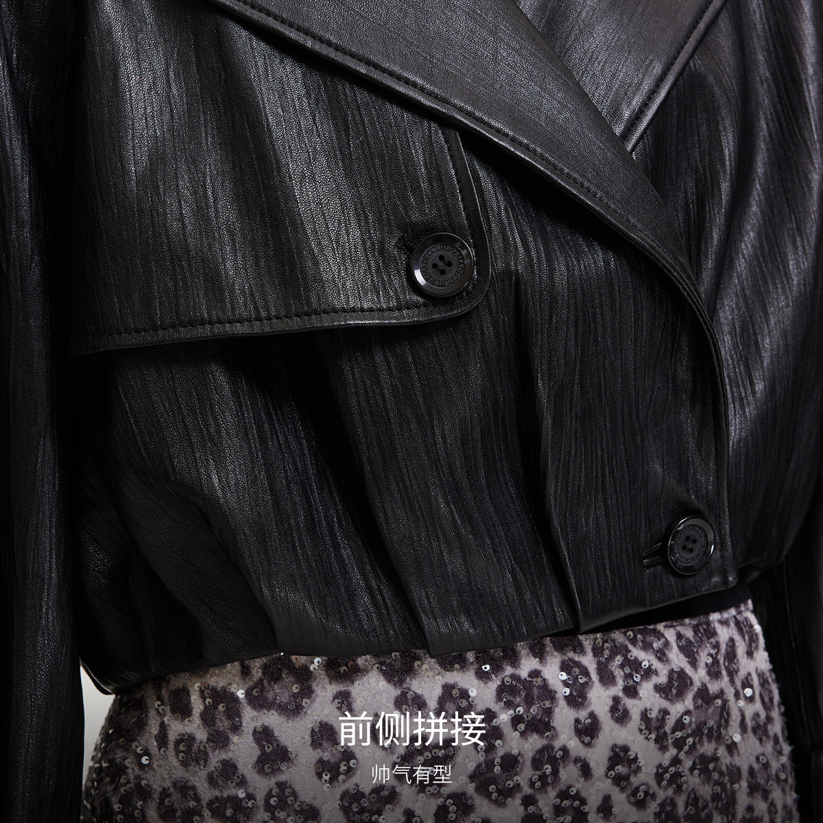 Couture Made皮衣2025春季新款前侧拼接绑带袖口皮衣325110011
