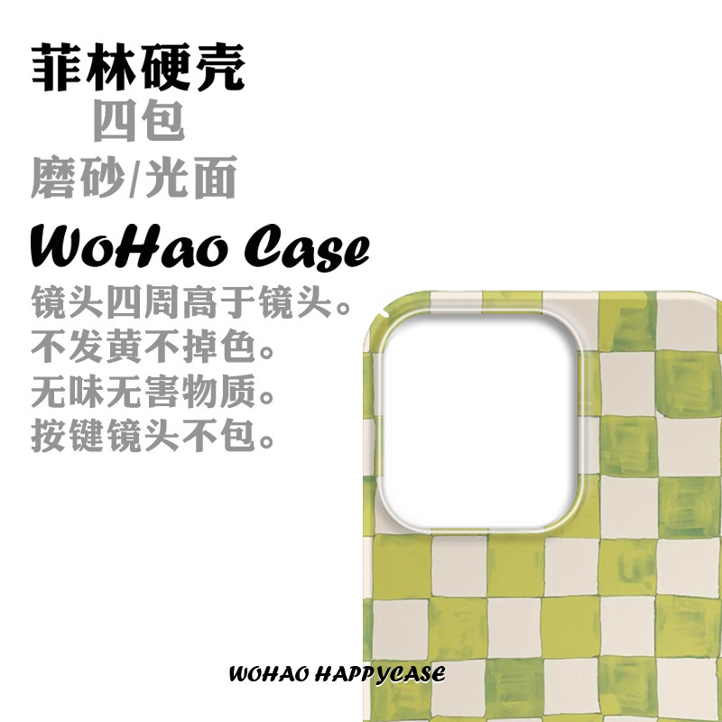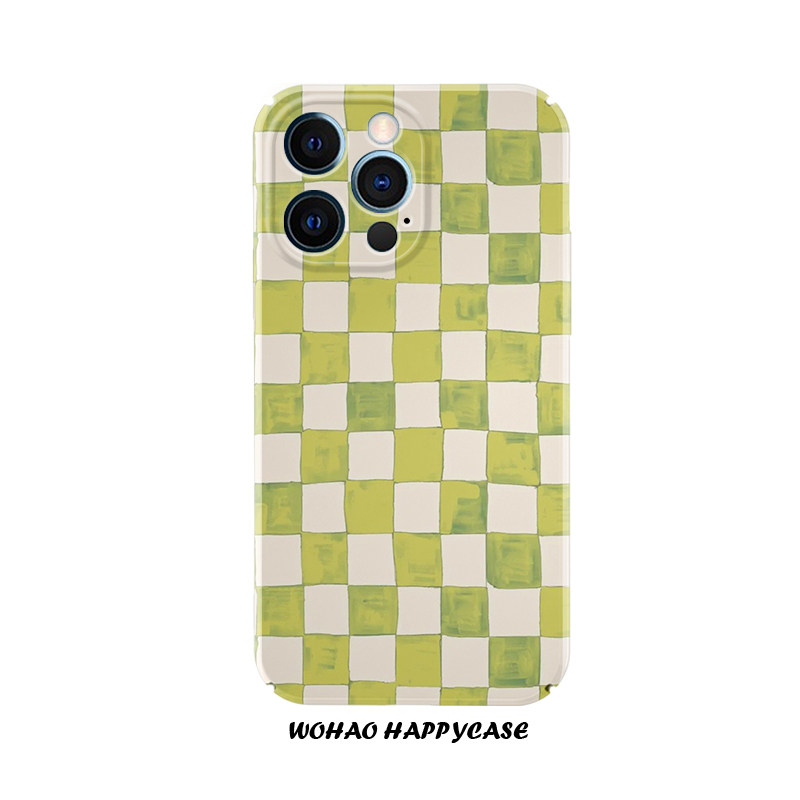 浅绿格子适用于苹果16手机壳14pro创意iPhone13港风高级12艺术磨砂华为P70pro菲林壳全包小米15一加13Tins风