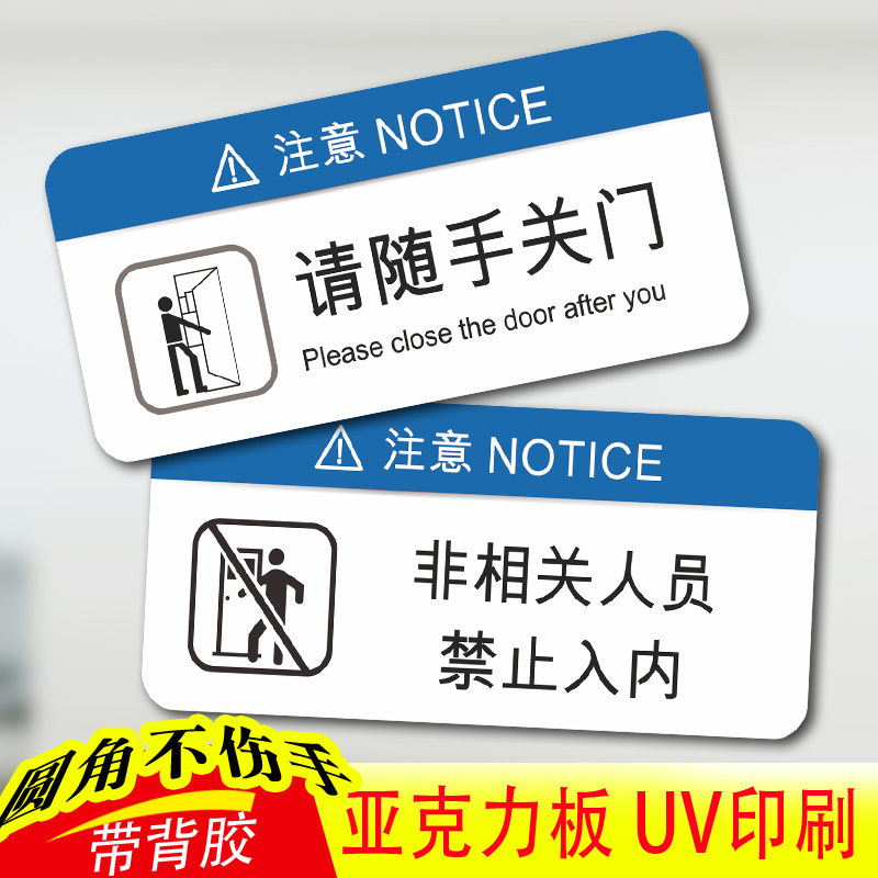 请随手关门提示牌亚克力标识牌非相关人员禁止入内指示牌学校企业公司工厂车间库房门牌标志贴配电室警示牌子
