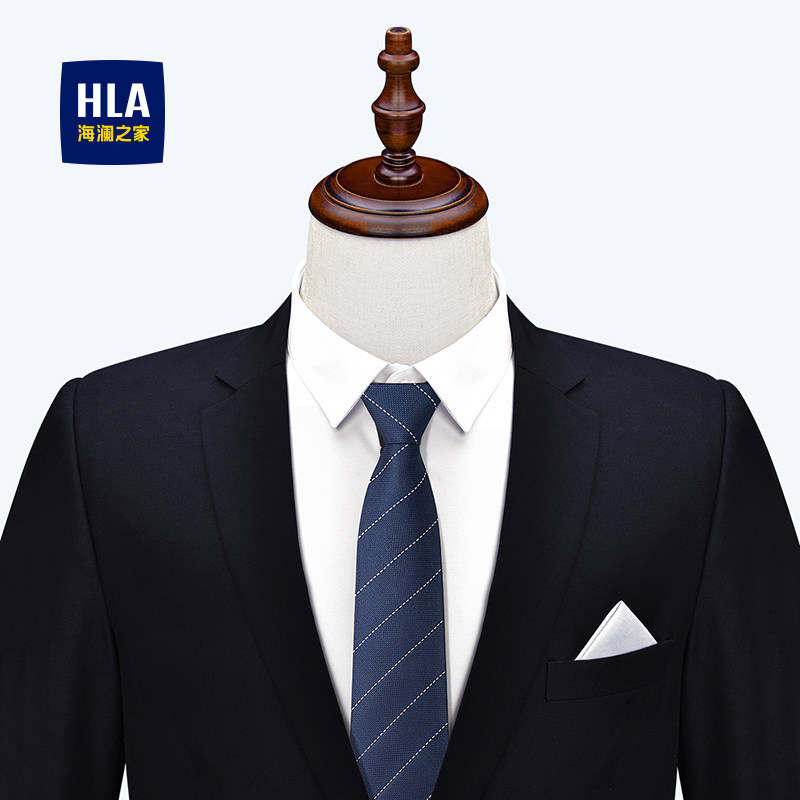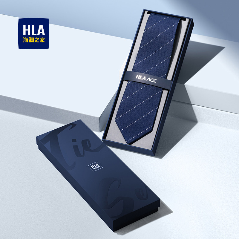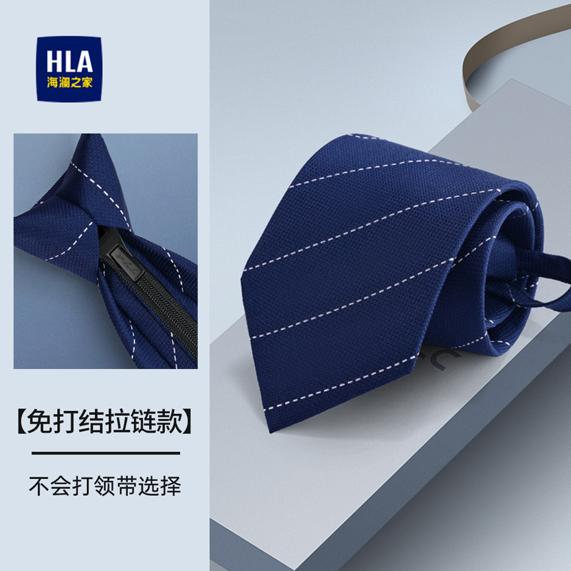 海澜之家免打领带拉链款男士2025年新款蓝色条纹休闲领花桑蚕丝潮