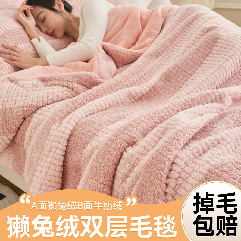 獭兔绒双层毛毯双层加厚牛奶绒盖毯休闲沙发毯办公室午睡毯床毯