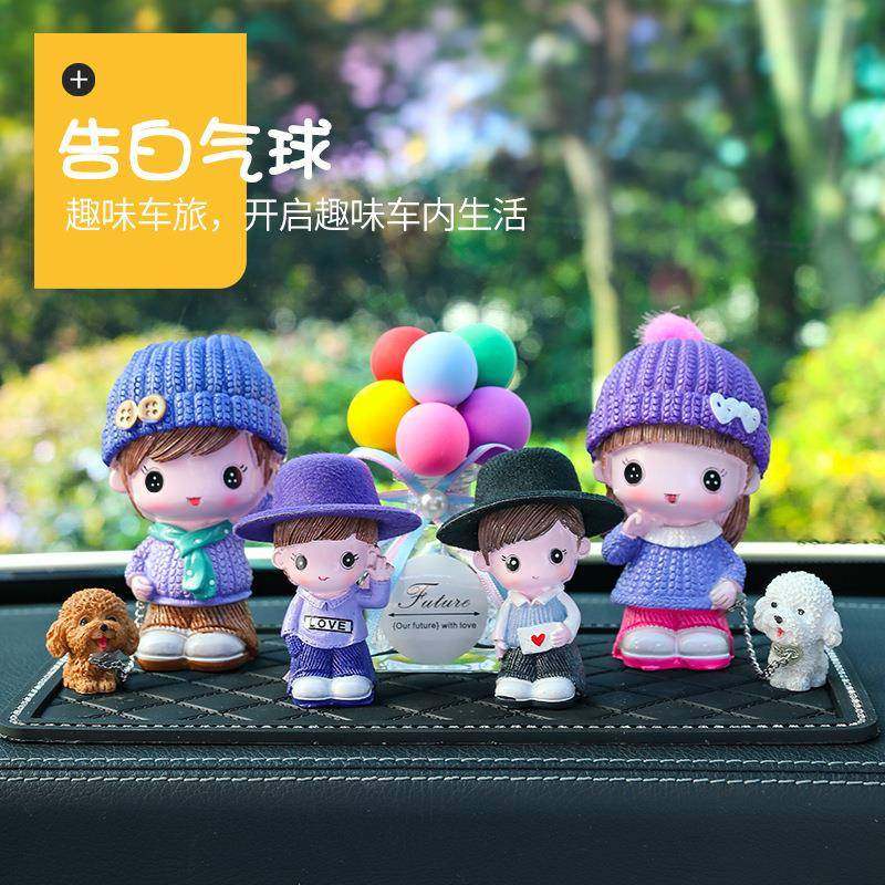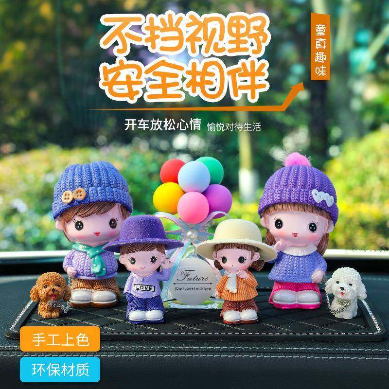 汽车摆件可爱遛狗娃娃全家福告车用白气球摆件车载装饰品大全