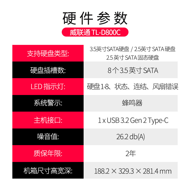 新品QNAP威联通TL-D800C八盘桌上型 USB 3.2 Gen 2 Type-C 大容量 JBOD网络存储器扩充设备nas扩展柜