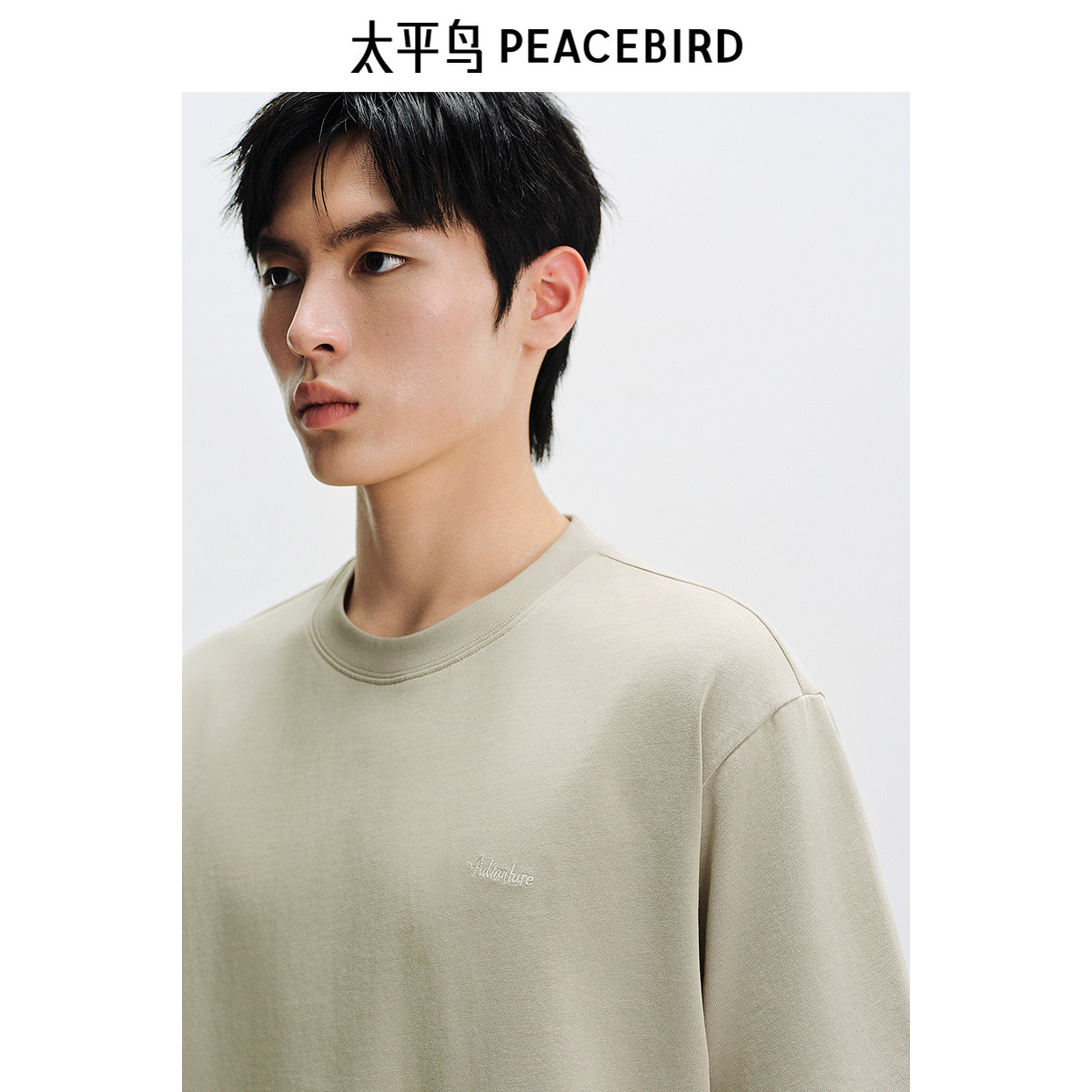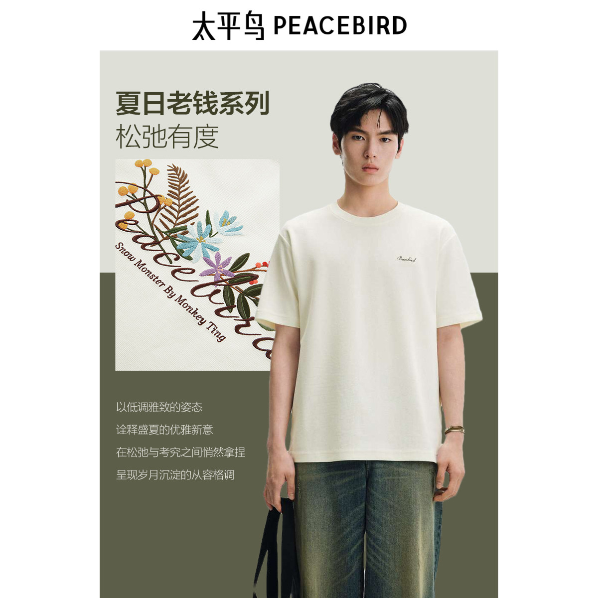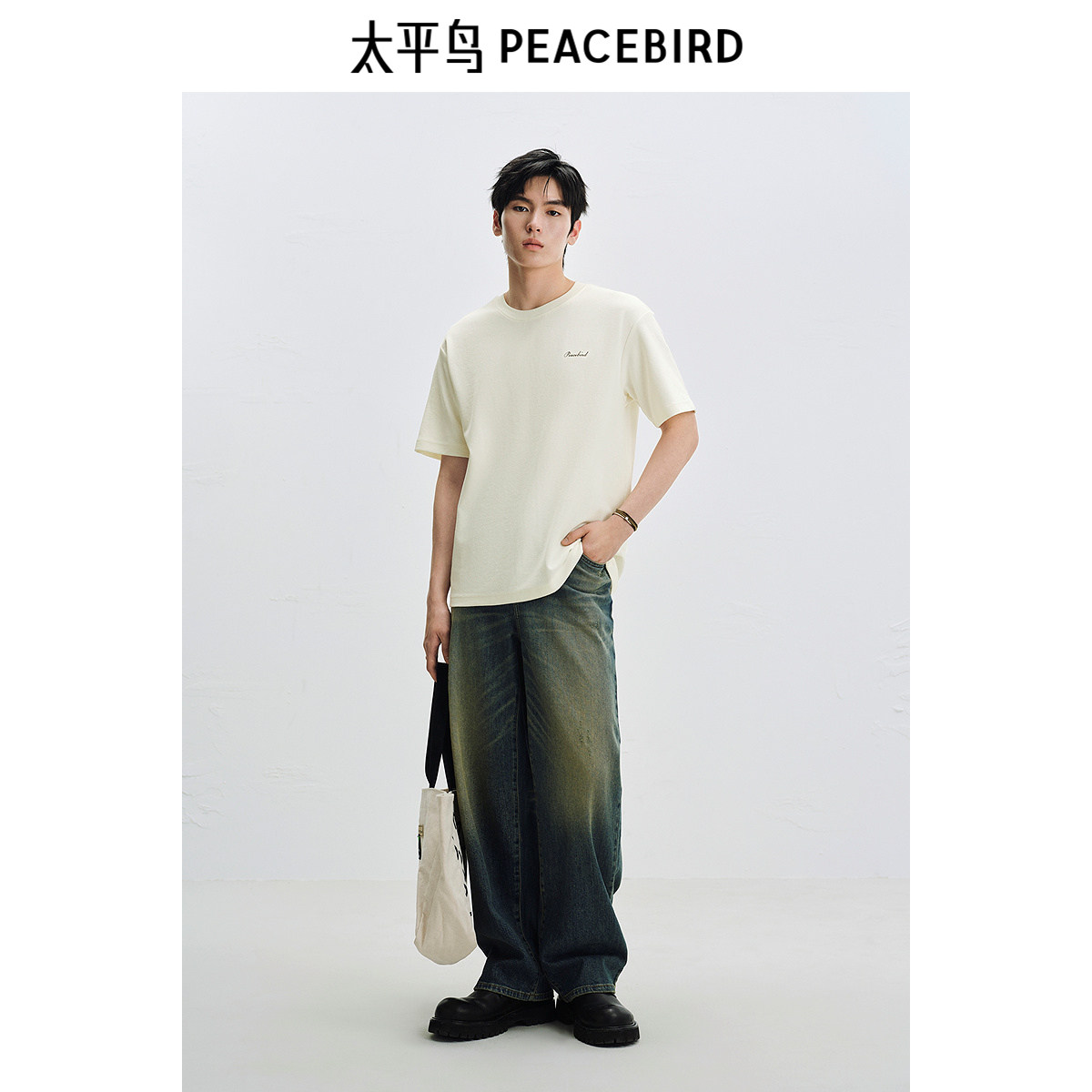 【凉感】太平鸟男装华夫格重磅短袖T恤夏季新款刺绣体恤衫斯文
