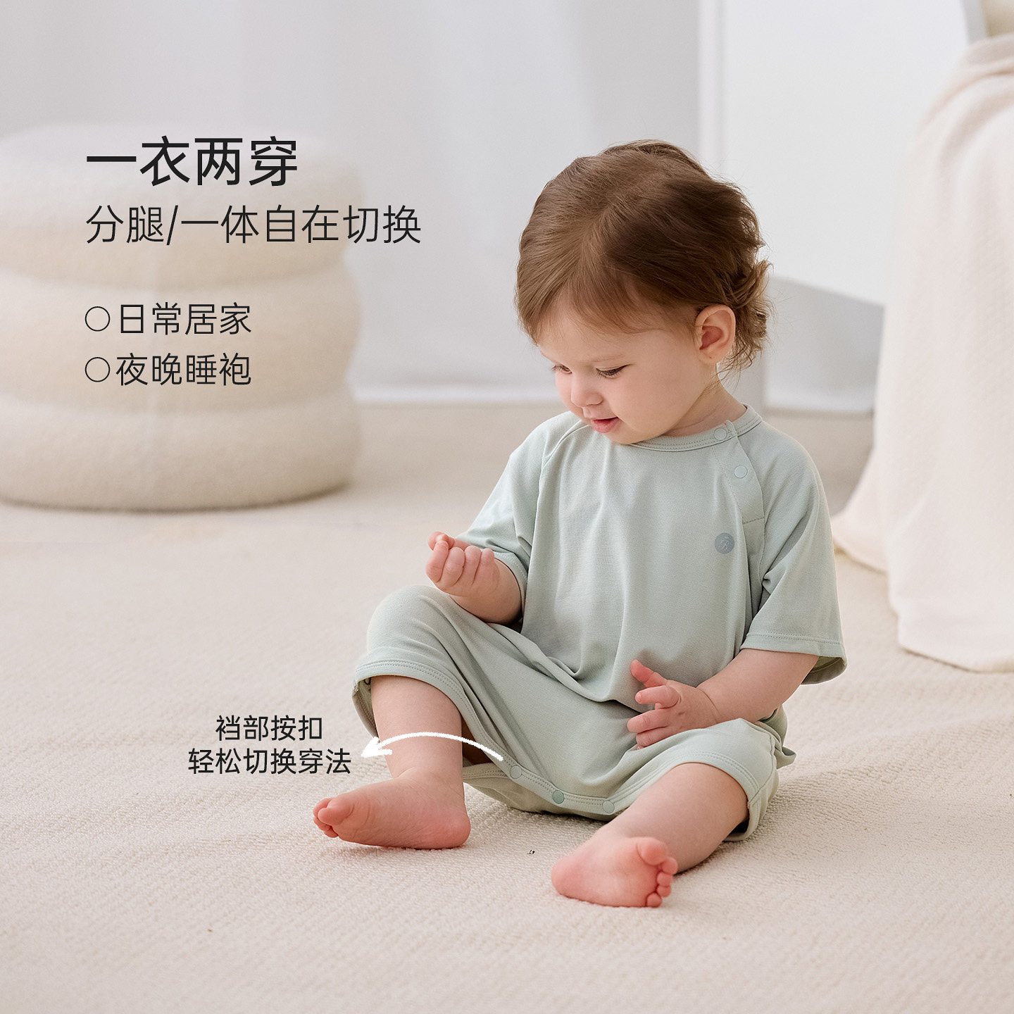 babylove婴儿连体衣夏季莫代尔轻薄睡衣宝宝哈衣弹力睡袍简约爬服