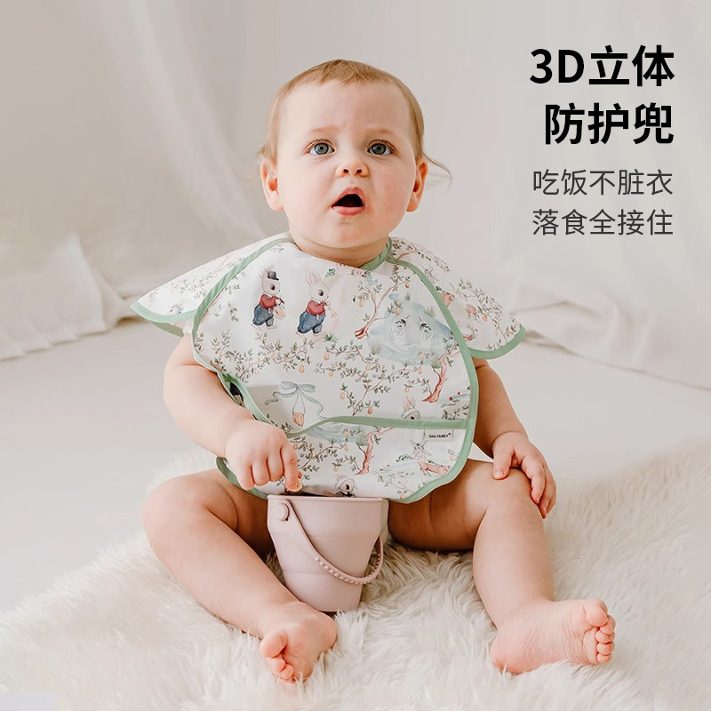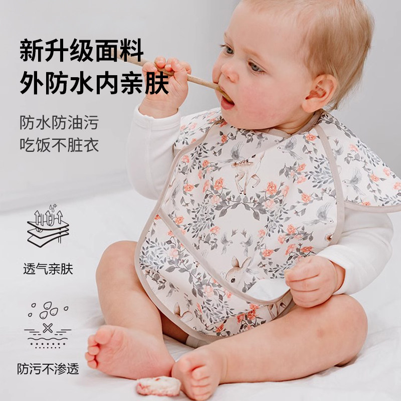 宝宝吃饭围兜婴儿辅食夏季无袖棉罩衣防水防油隔脏儿童饭兜反穿衣
