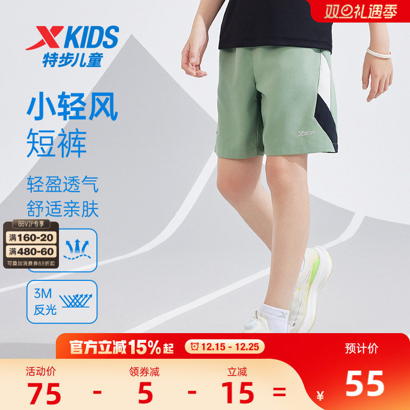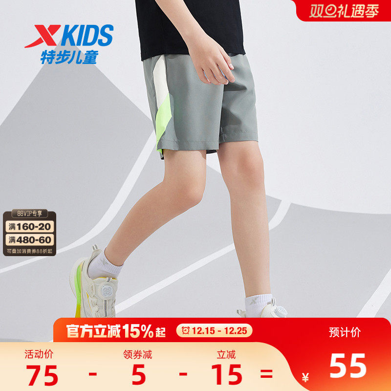 特步儿童拼接速干短裤男童五分裤2025年夏季新款大童薄款裤子夏装