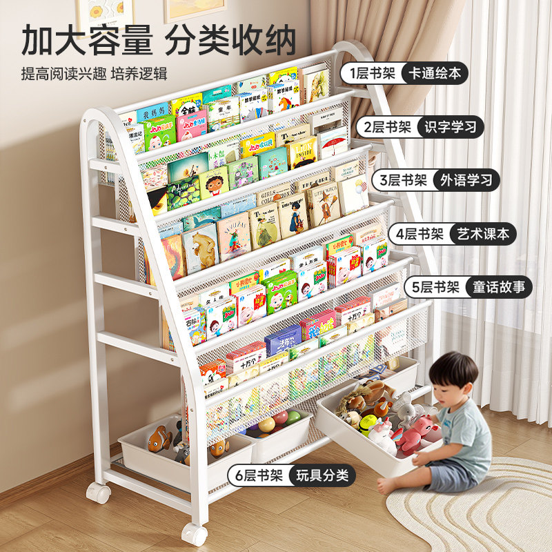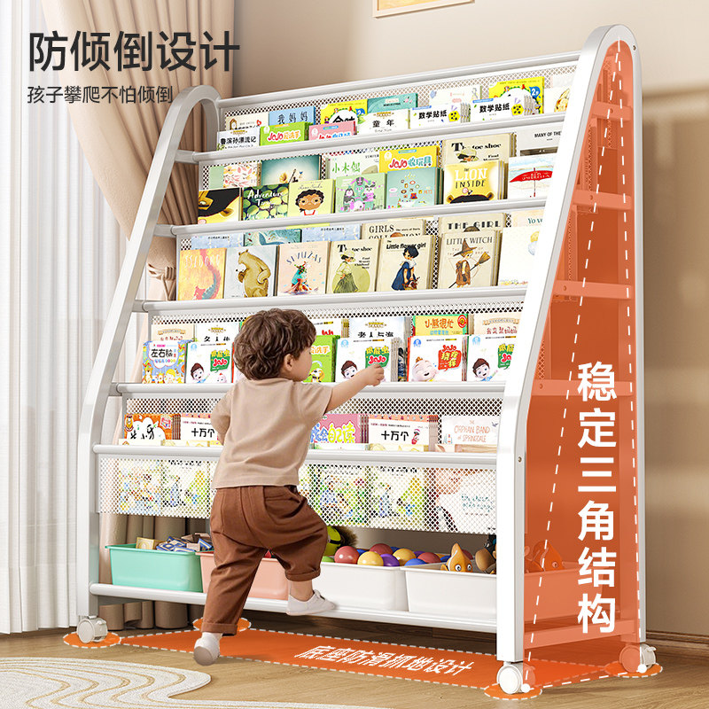 友耐儿童书架绘本架移动玩具收纳架宝宝书柜置物架子落地多层阅读