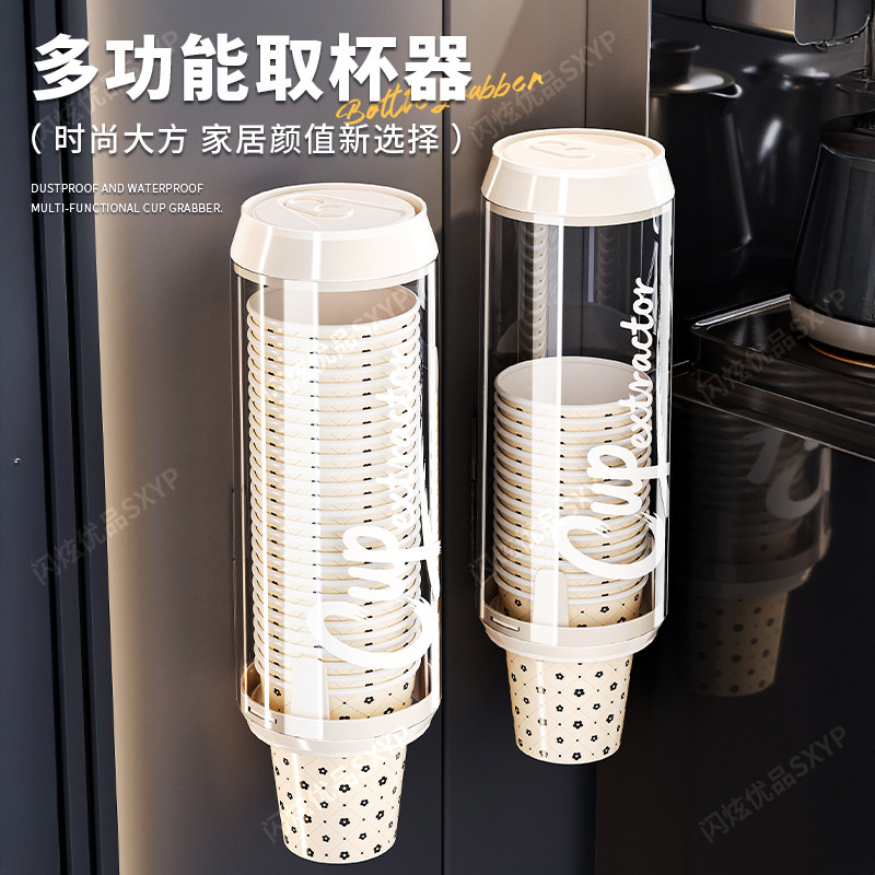 一次性杯子挂架自动取杯器家用挂壁式纸杯架创意水杯收纳家用架子
