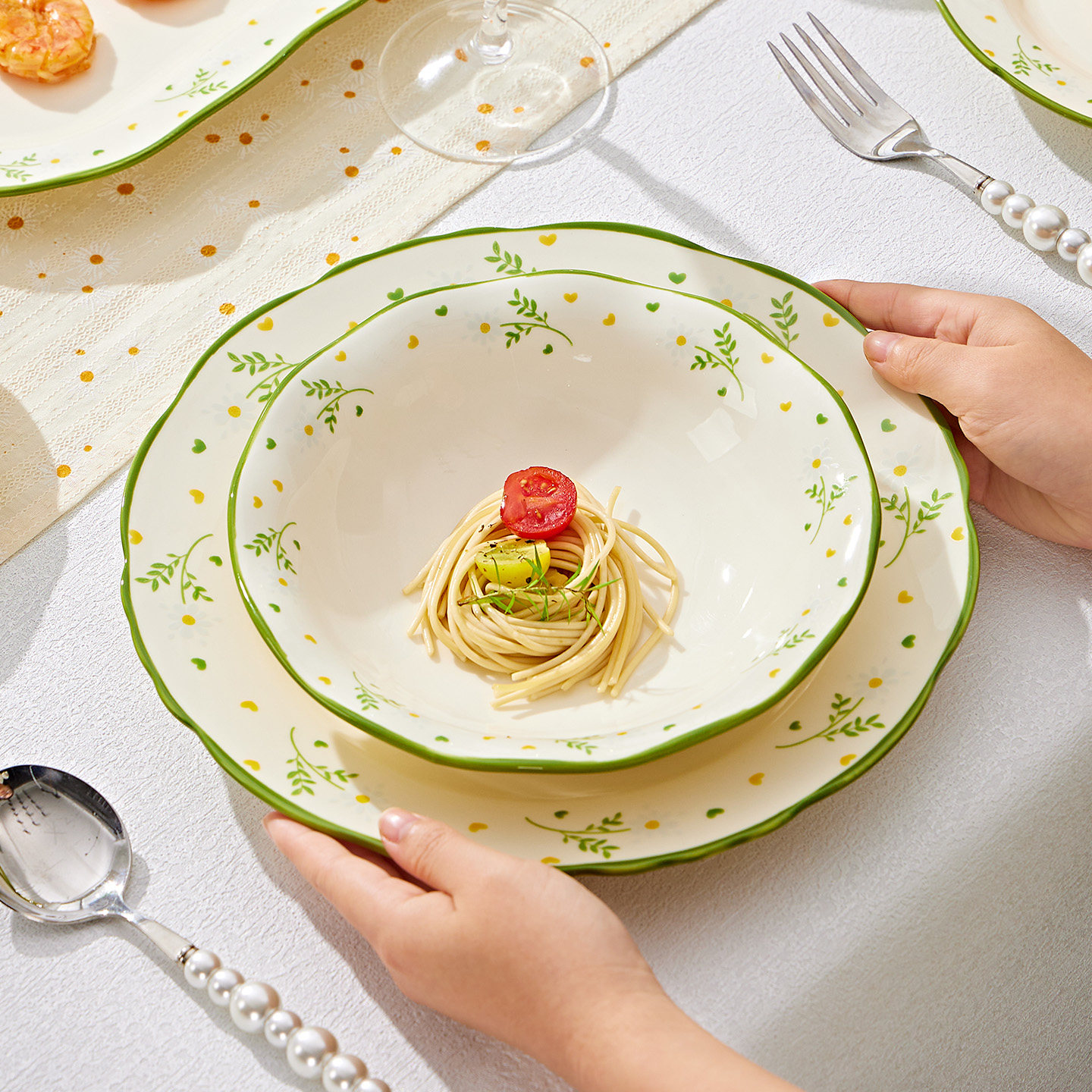 奶油风陶瓷碗家用卡通菜盘子可爱米饭碗汤碗釉下彩儿童餐具耐高温