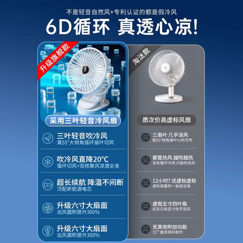 循环制冷】桌面小风扇电风扇家用静音小型办公室2026新款usb充电续航学生宿舍夹式制冷卧室降温神器超长续航