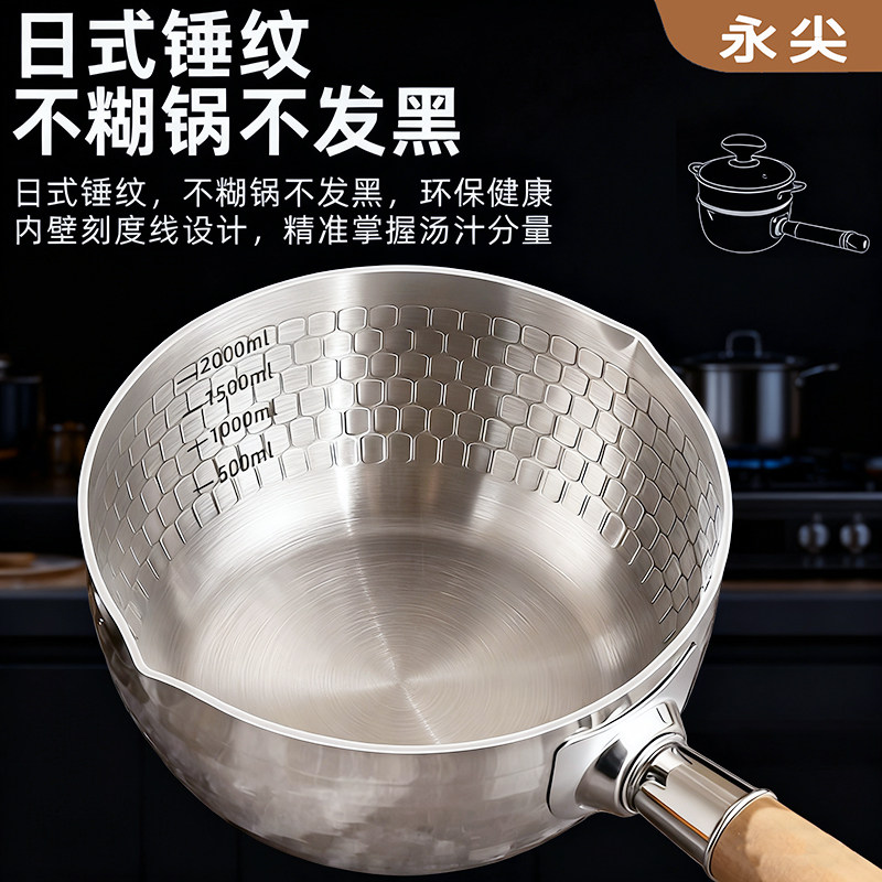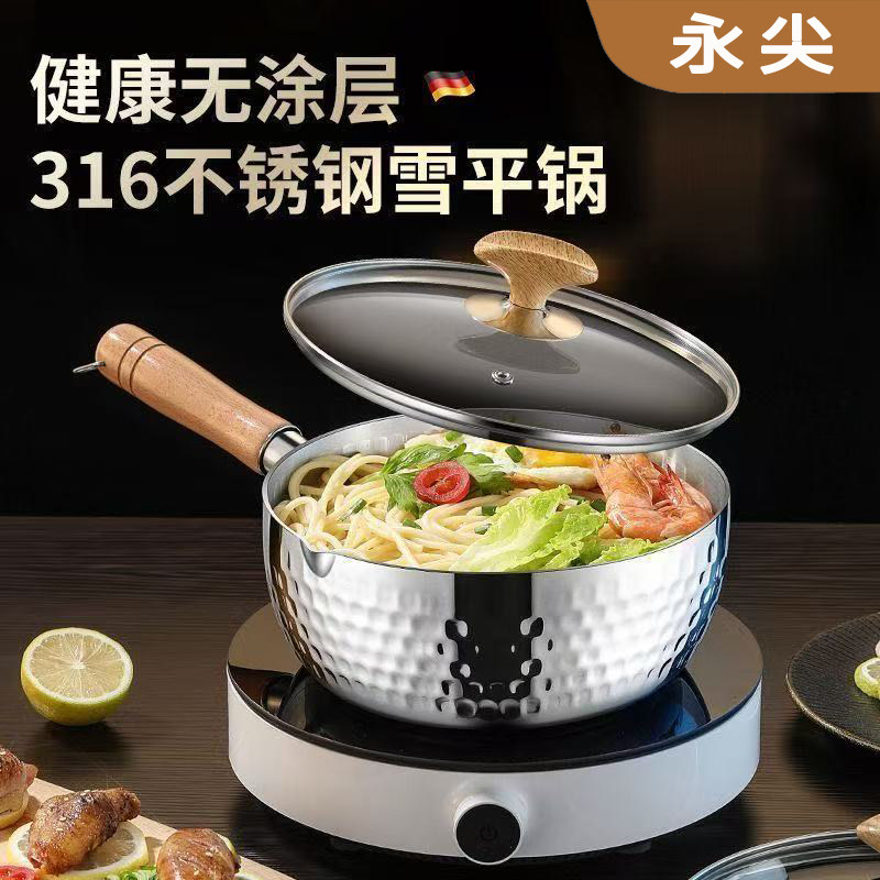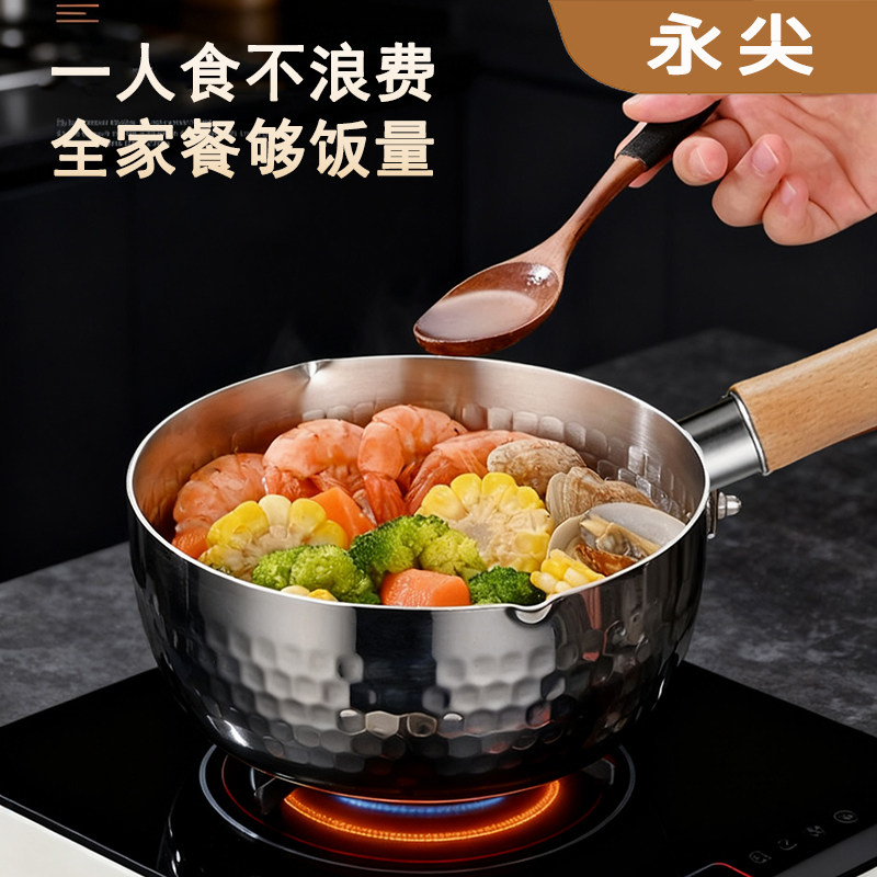 永尖日式316不锈钢抑菌雪平锅无涂层家用奶锅宝宝辅食汤锅泡面锅