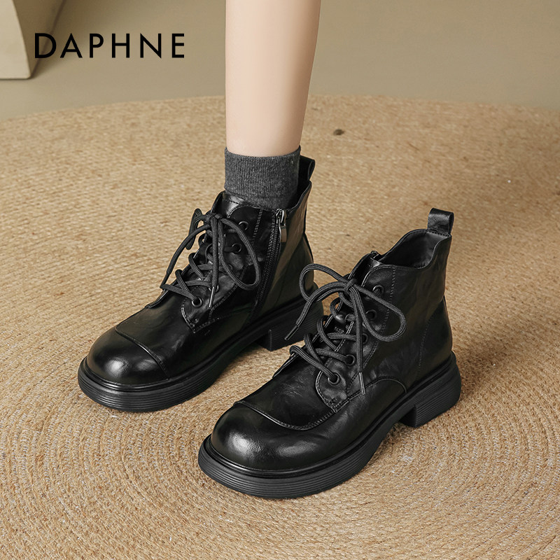 达芙妮厚底黑色马丁靴女2026新款冬季英伦风复古雪地靴女加绒短靴