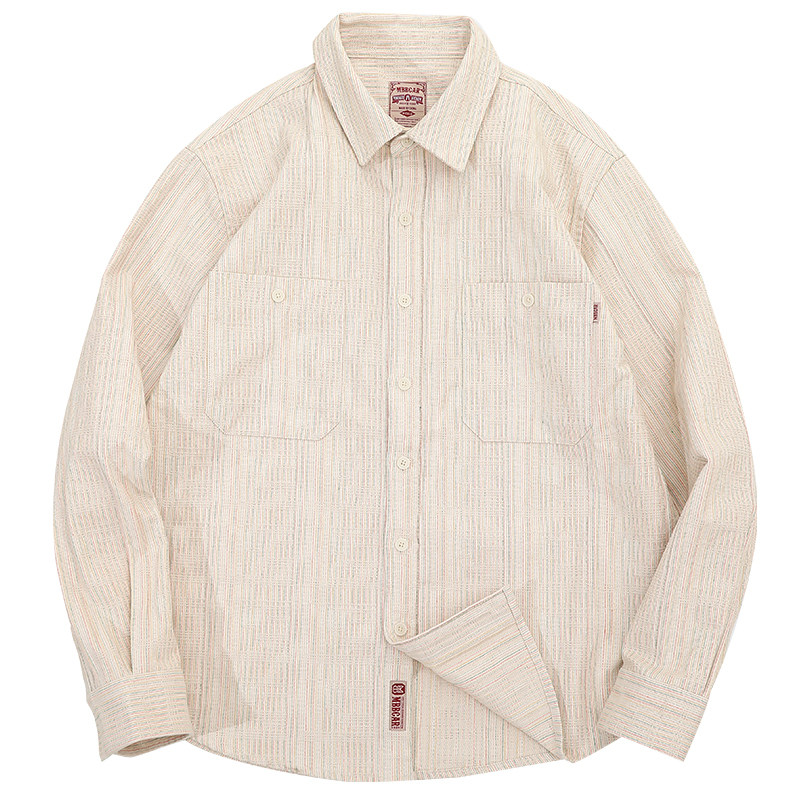 特殊肌理美式复古原棉米色衬衫 阿美咔叽简约水洗衬衣MBBCAR窄幅