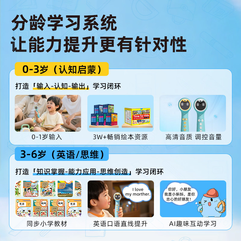 【国补15%】小蝌蚪点读笔通用非万能raz英语分级阅读绘本a6s多功能智能学习神器海尼曼gk70幼儿早教小学生a8s