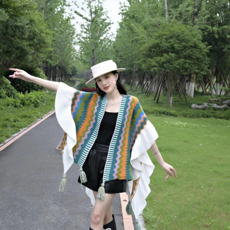 针织民族风披肩云南丽江旅游拍照斗篷高级感披风外搭针织开衫披肩