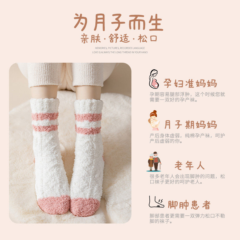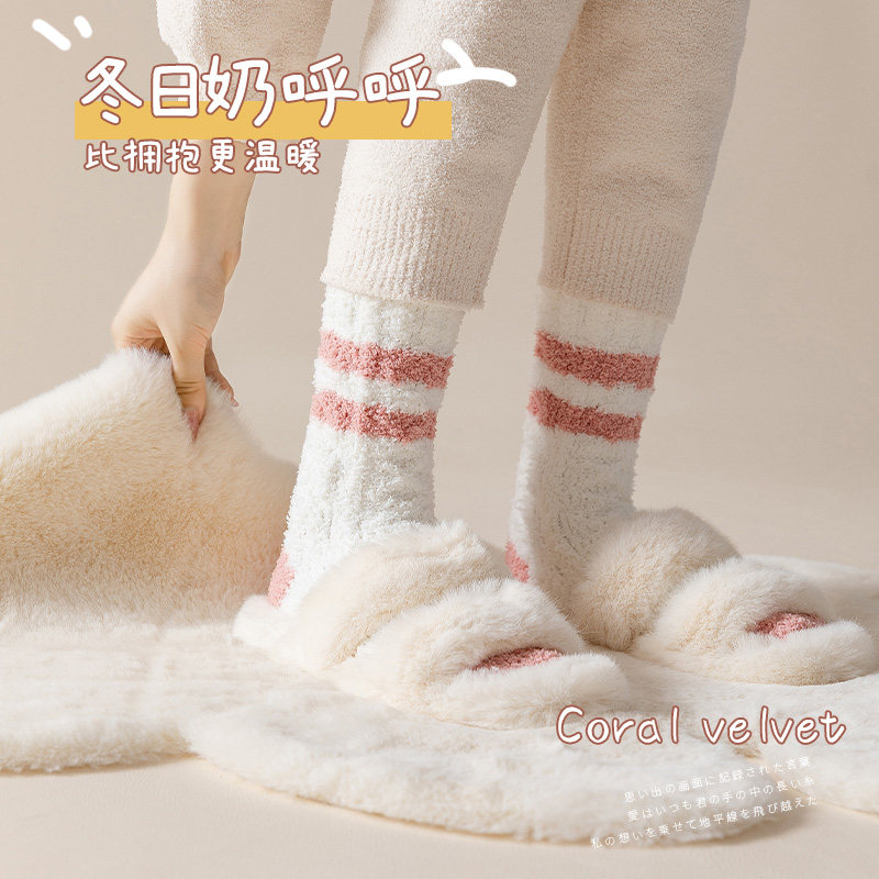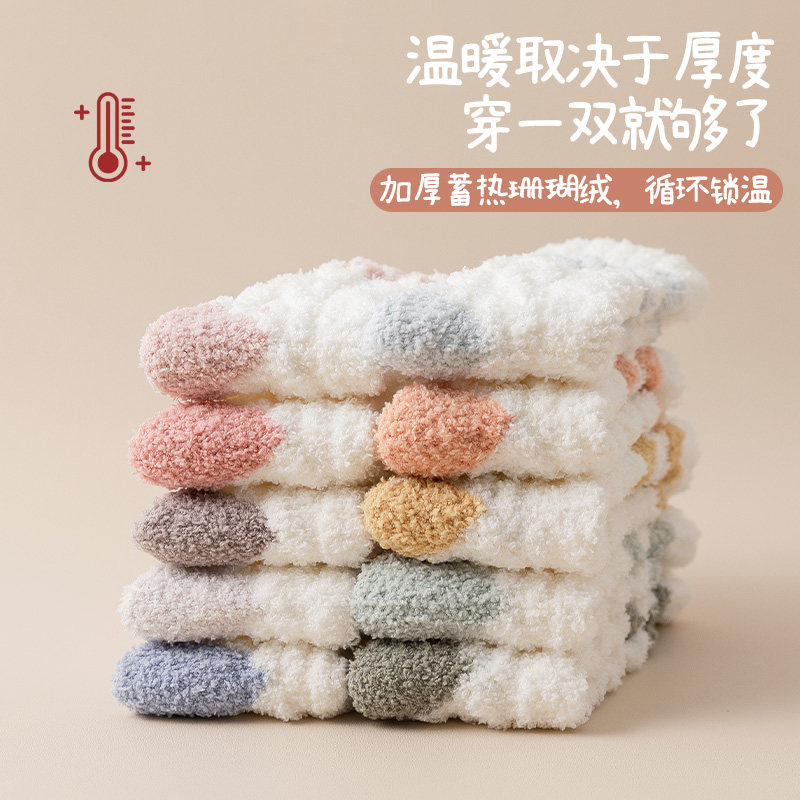 珊瑚绒袜子女冬季加厚加绒保暖地板袜睡眠月子袜秋冬新款睡觉袜子