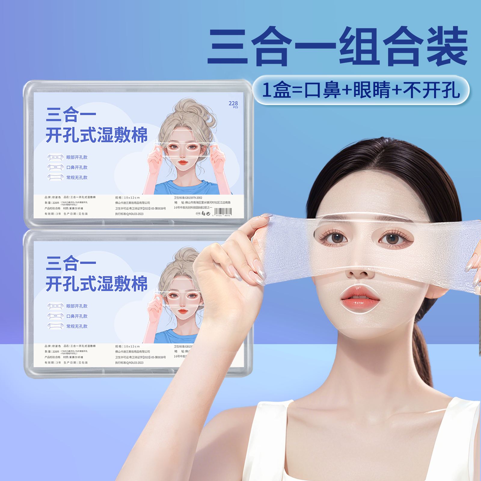 三合一湿敷棉可拉伸敷脸专用开孔款脸部补水化妆棉超薄面膜卸妆棉