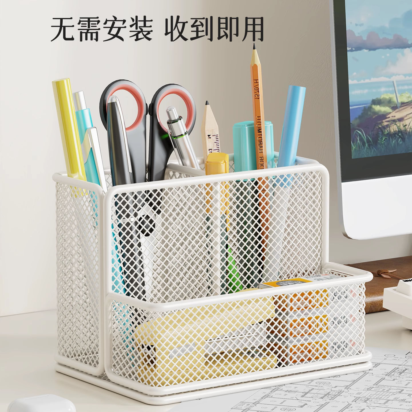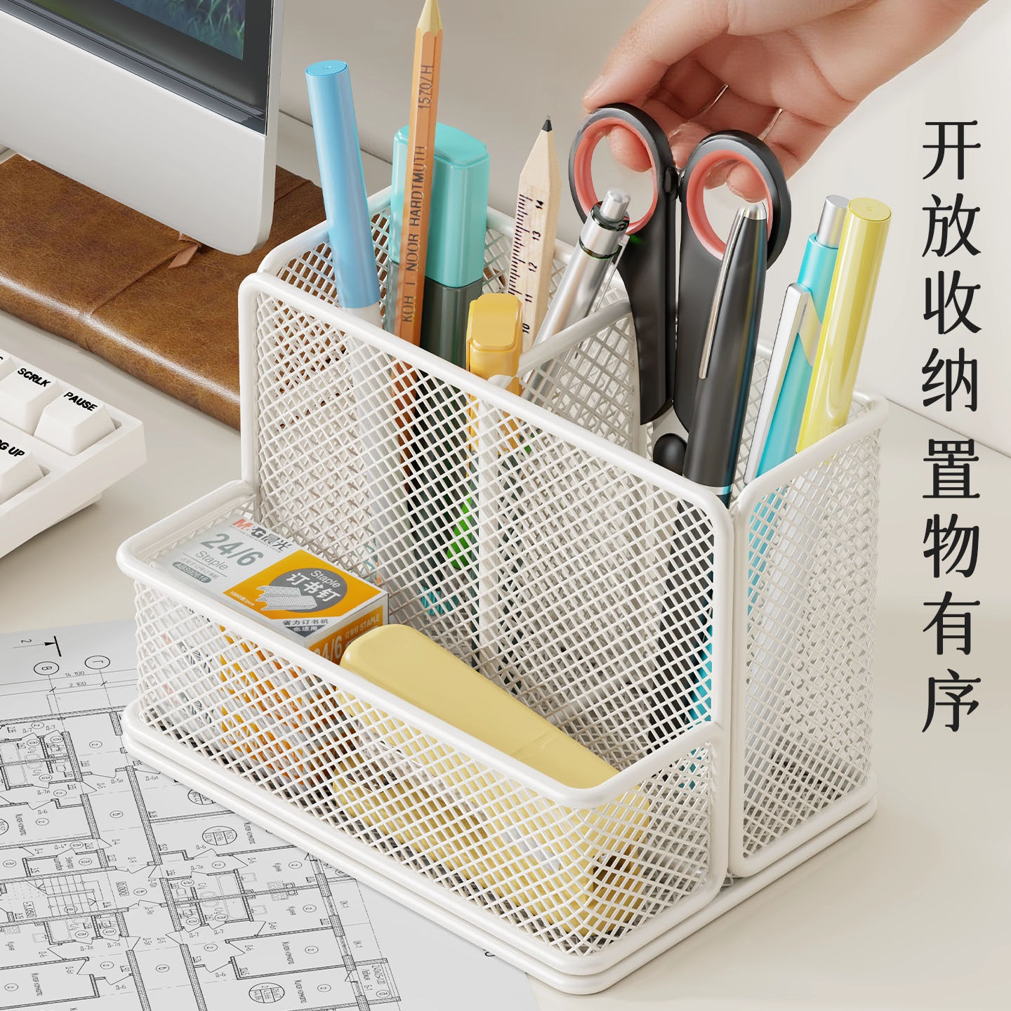 笔架收纳笔筒学生桌面笔桶网红大容量收纳盒办公室置物化妆黑色