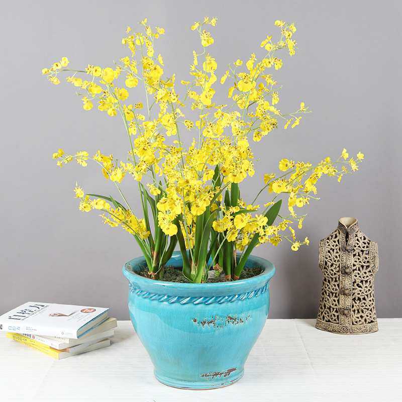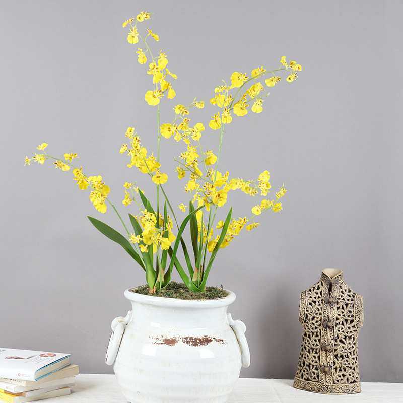 高质带根单棵仿真文心兰 黄色跳舞兰装饰品摆件欧式花瓶餐桌客厅