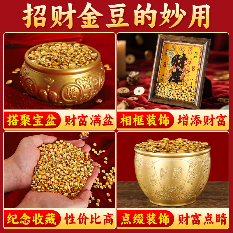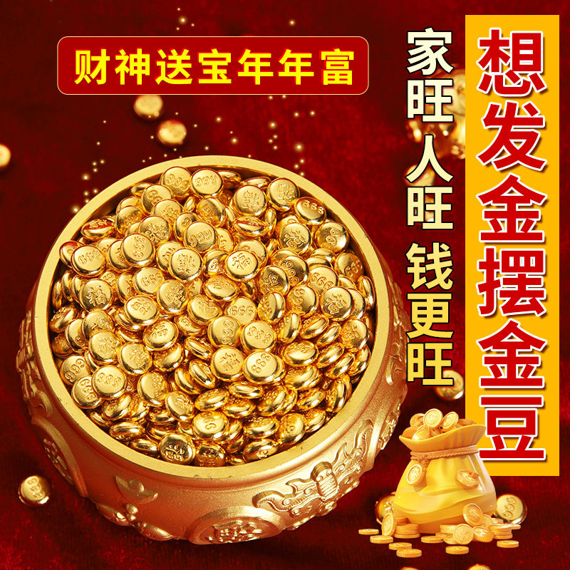 金豆实心合金仿真小金豆摆件沙金元宝聚宝盆配件装饰品开业乔迁礼