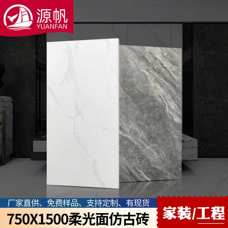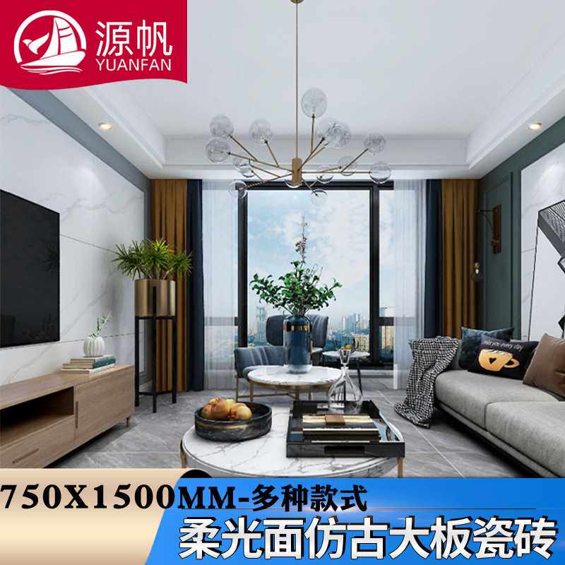 佛山大板哑光地板砖灰色商场客厅瓷砖仿大理石柔光仿古砖750X1500