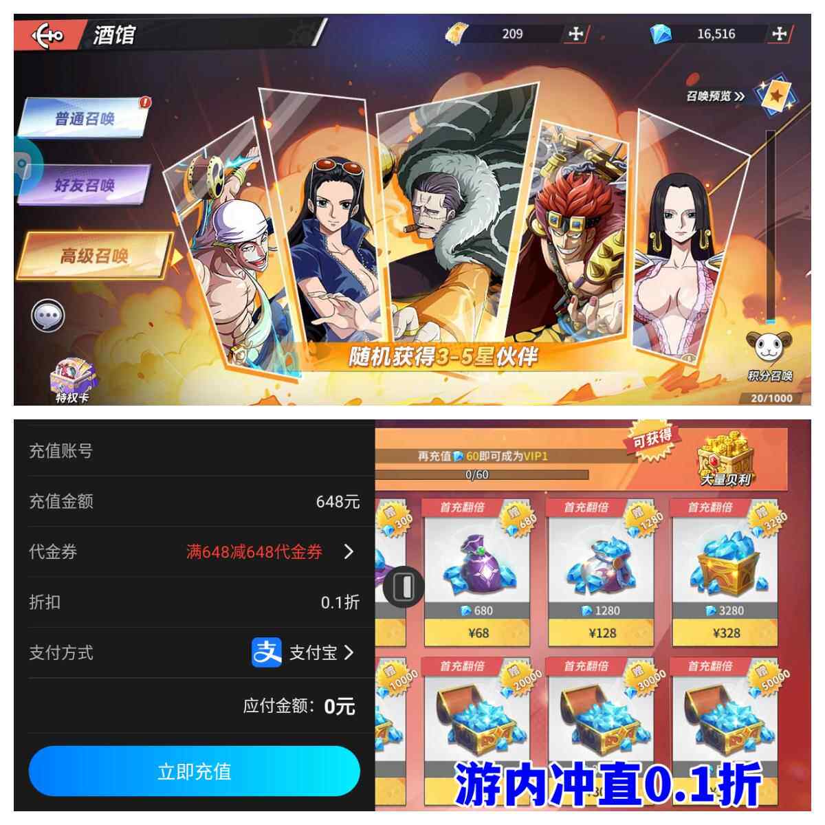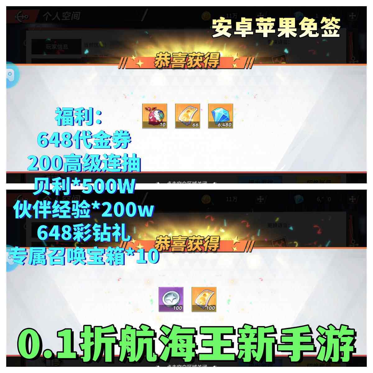航海王0.1折手游热血航线福利送5星卡+648券+200抽海贼卡牌非单机