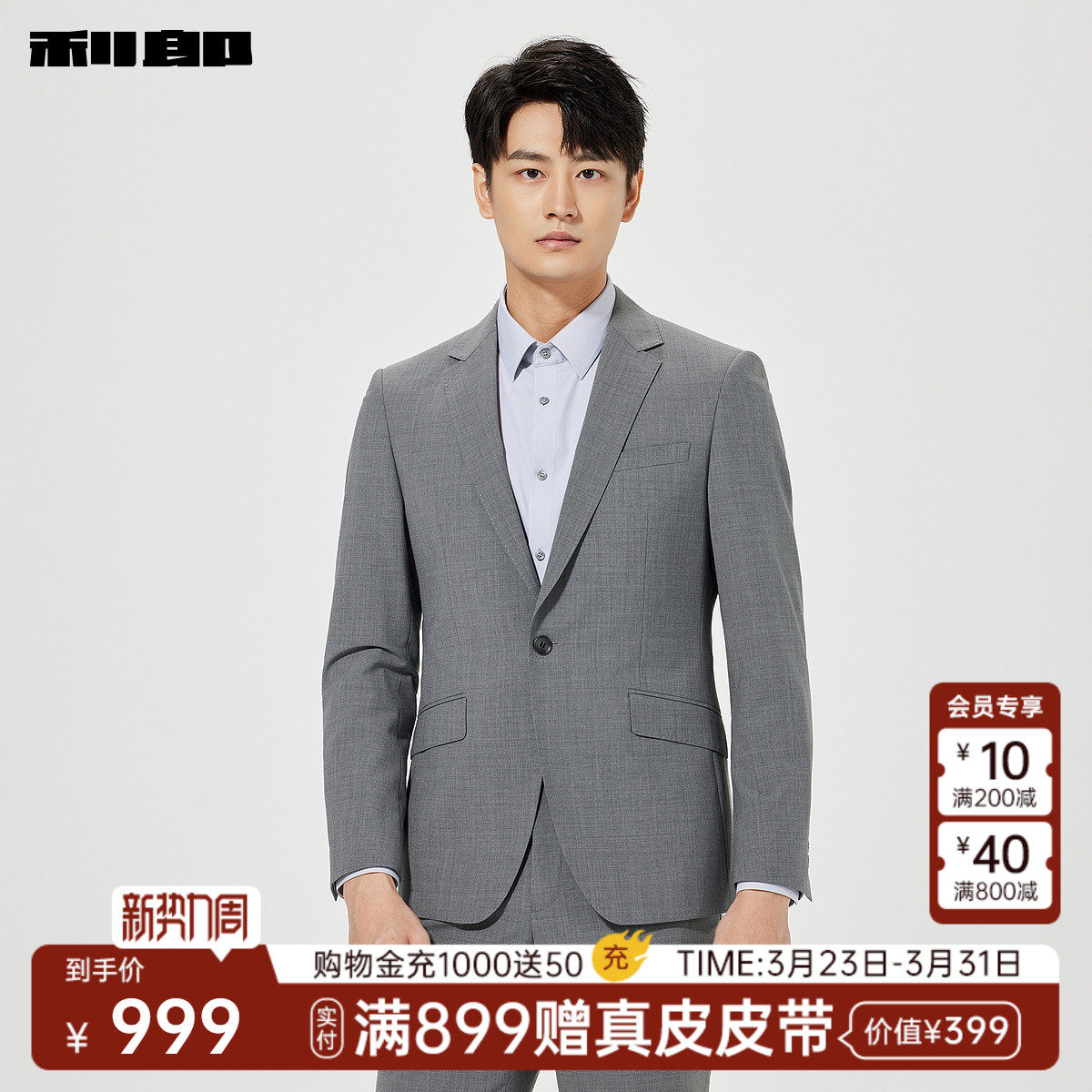 【绵羊毛】利郎官方正品 西服套装男士商务正装纯色春季新款套西
