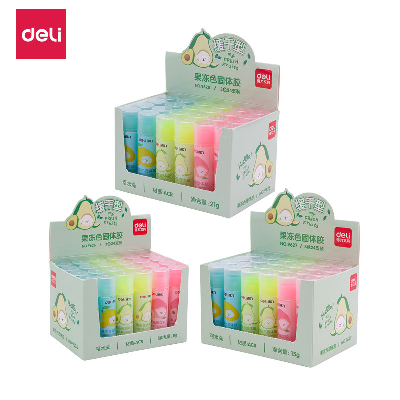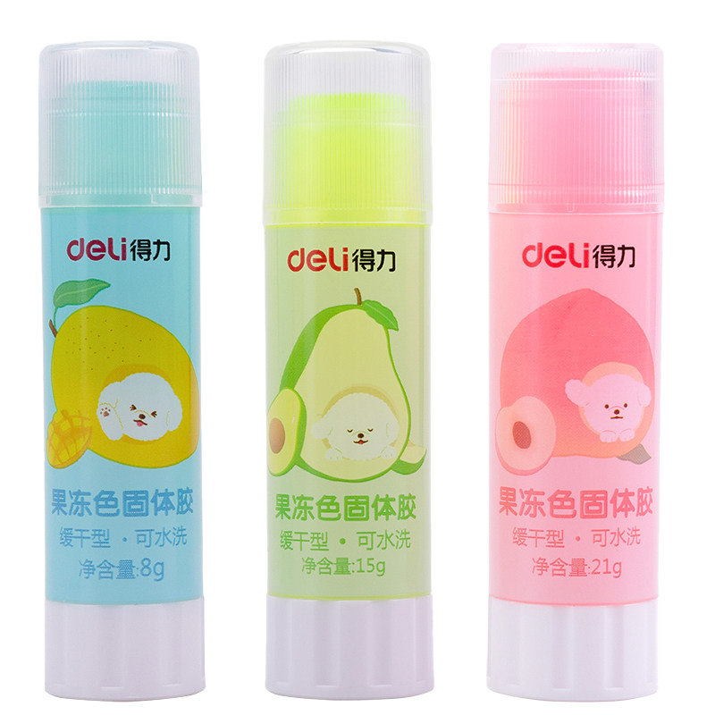 得力果冻胶棒固体胶学生用品糖果色固体胶高粘度8g透明胶棒15g儿童幼儿园手工用制作材料21g彩色固体胶棒速干