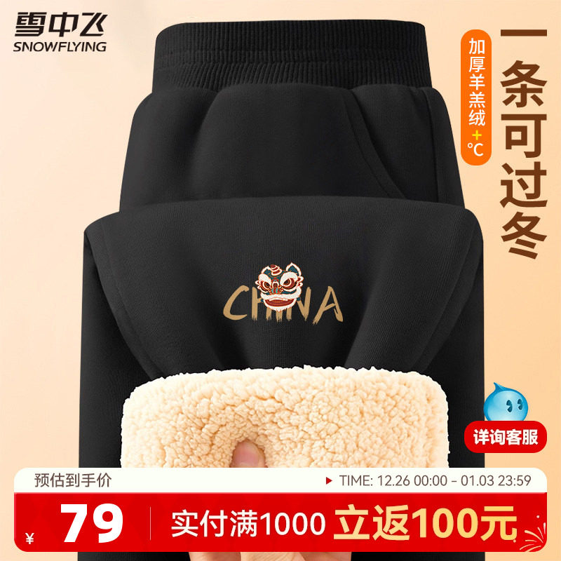 雪中飞加绒裤子女冬季2025新款仿羊羔绒加厚棉裤女士运动休闲裤PC