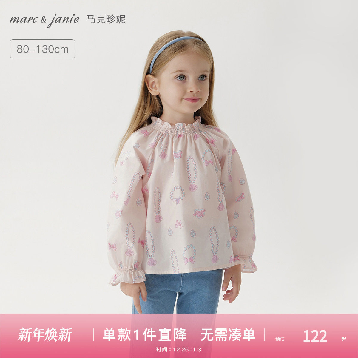 马克珍妮女童甜美花边领衬衫 宝宝纯棉衬衣2025年春装新款250239