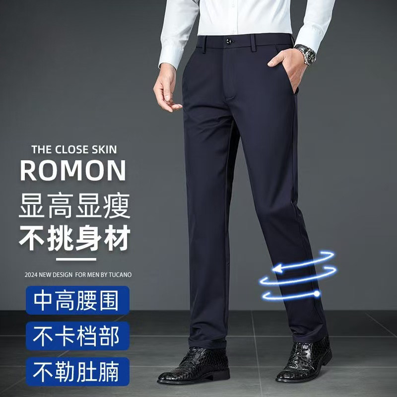罗蒙休闲裤子男士商务休闲秋季新款抗皱弹力日常直筒西裤秋款