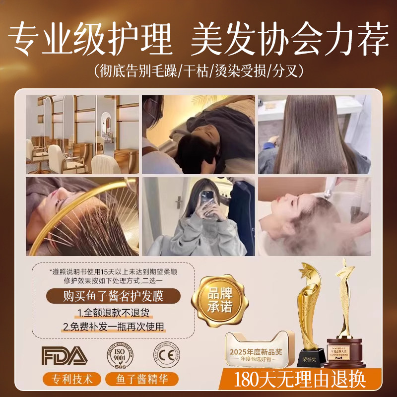 闪钻鱼子酱发膜蛋白还原酸柔顺护发素修护干枯毛躁护发顺滑旗舰店