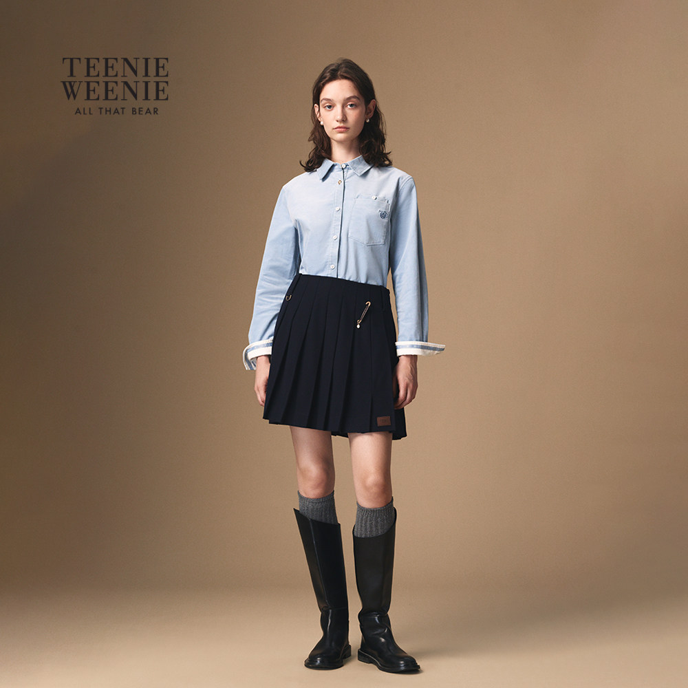 TeenieWeenie小熊女装半身裙2025冬季新款学院风优雅气质风百褶裙