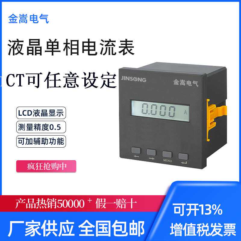液晶单相电流表AC1A可编程电子数显表LCD显示数字式电流表盘装式