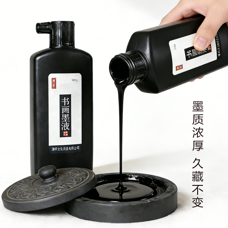 湖羊墨汁毛笔书法专用文房四宝砚台书画墨液大瓶500g墨水成人学生练字用具套装大容量国画金色墨汁正品包邮