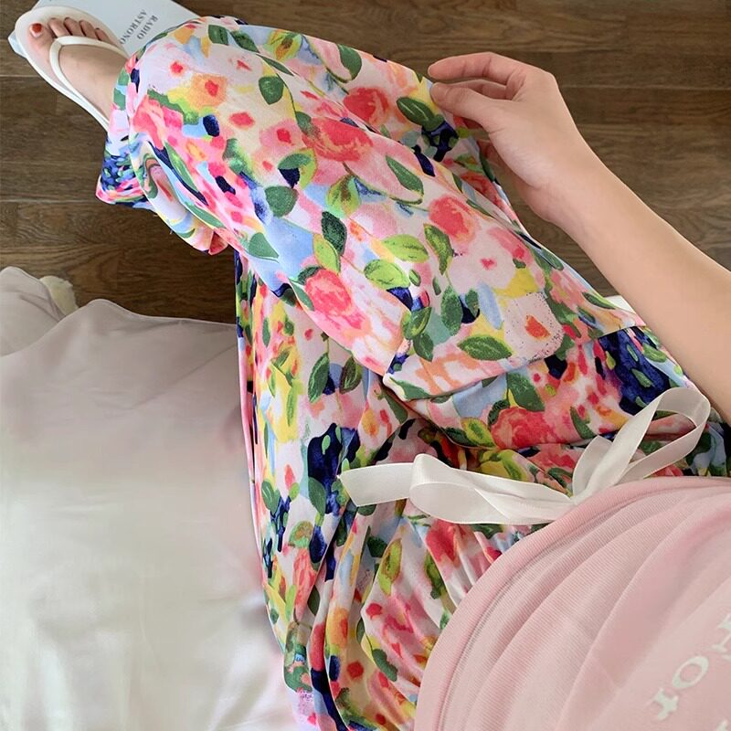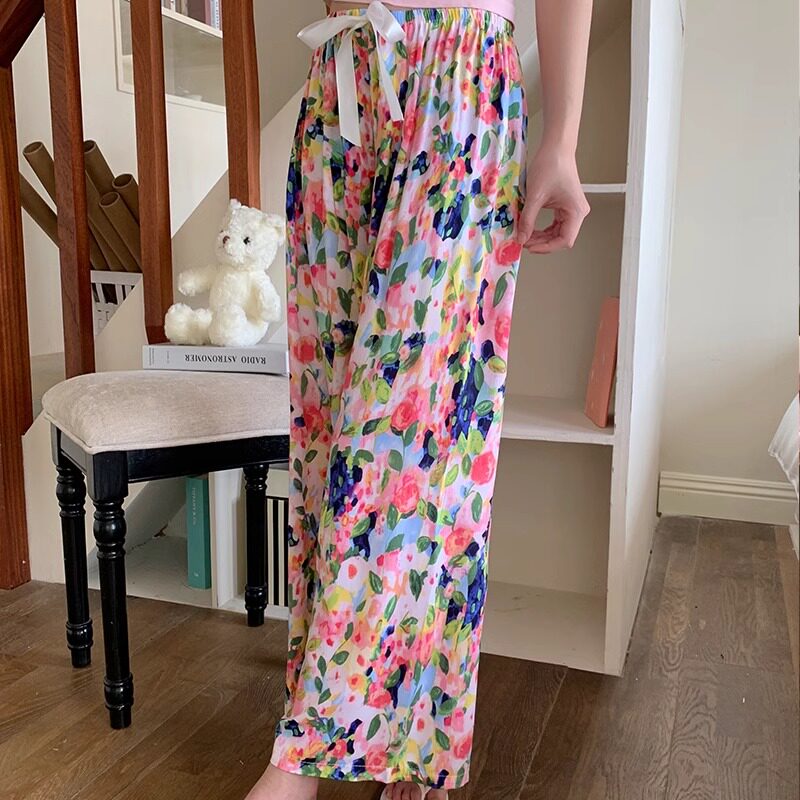 居家人棉绸睡裤阔腿裤夏季薄款碎花九分裤子女士2026长裤家居休闲