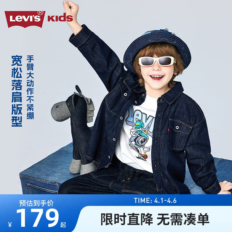 Levis李维斯儿童牛仔衬衫外套夹克2026春装新款男童女童衬衣童装