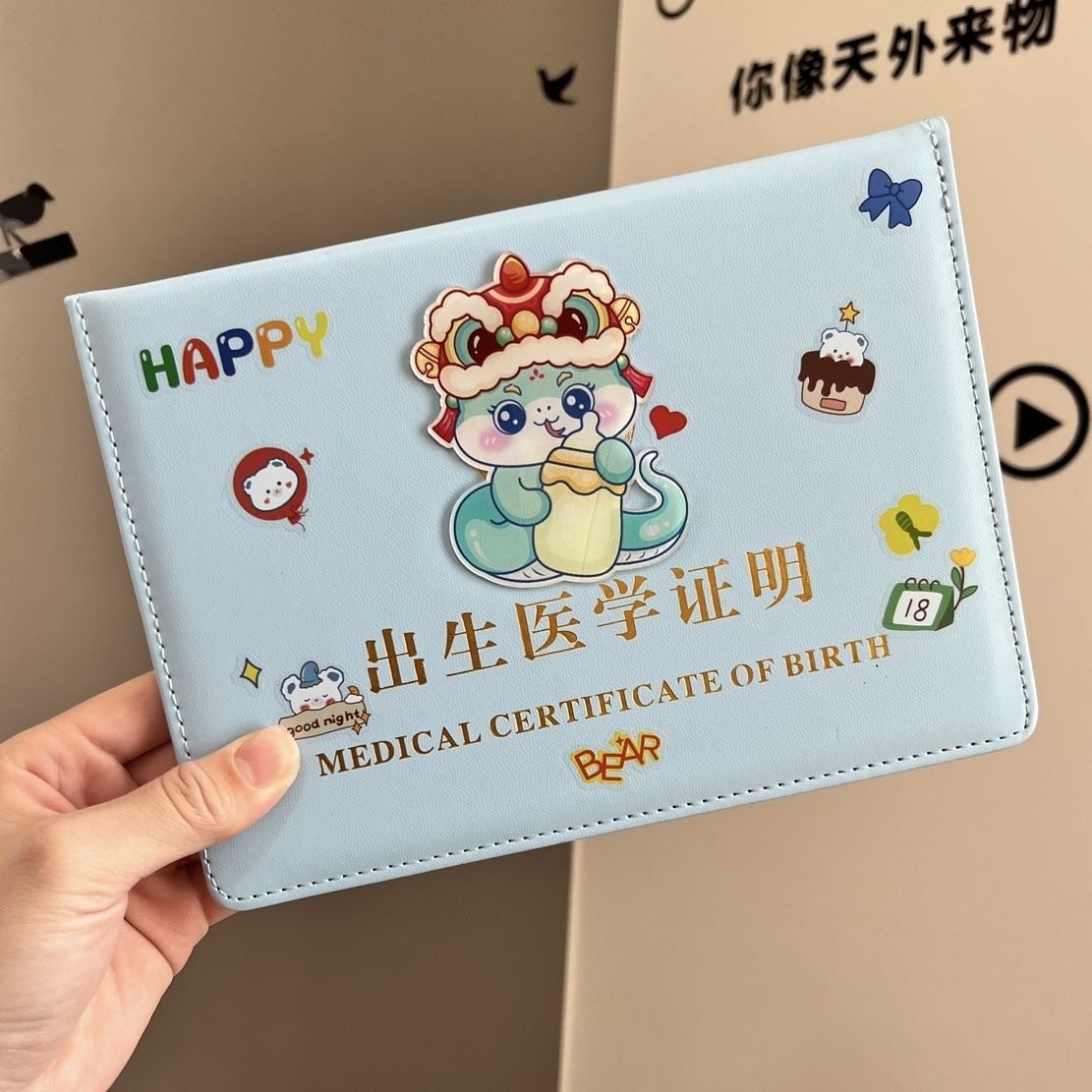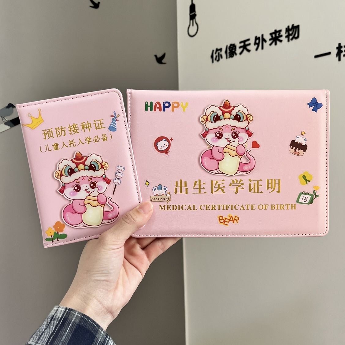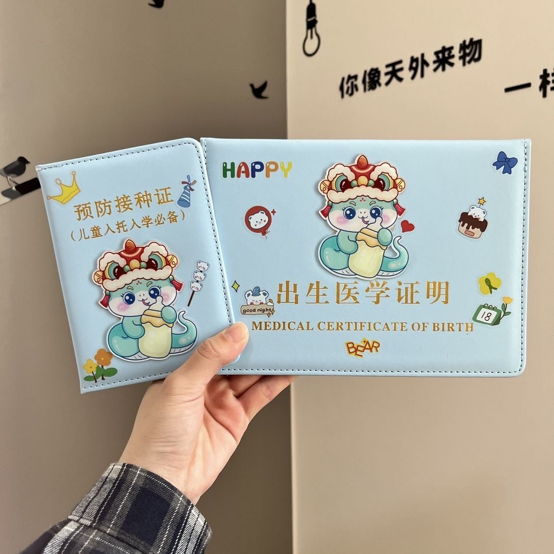 蛇宝宝医学出生证明保护套全国通用新生儿童2025新版疫苗接种证预防针文件册宝宝护套皮套证件婴儿袋疫苗本