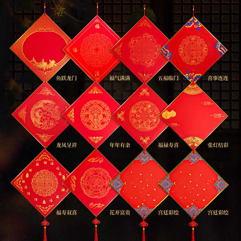 万年红福字硬卡挂件2026新款空白手写红纸半生半熟加厚宣纸镂金斗方福字春节装饰中国结灯笼大门半生熟半熟宣