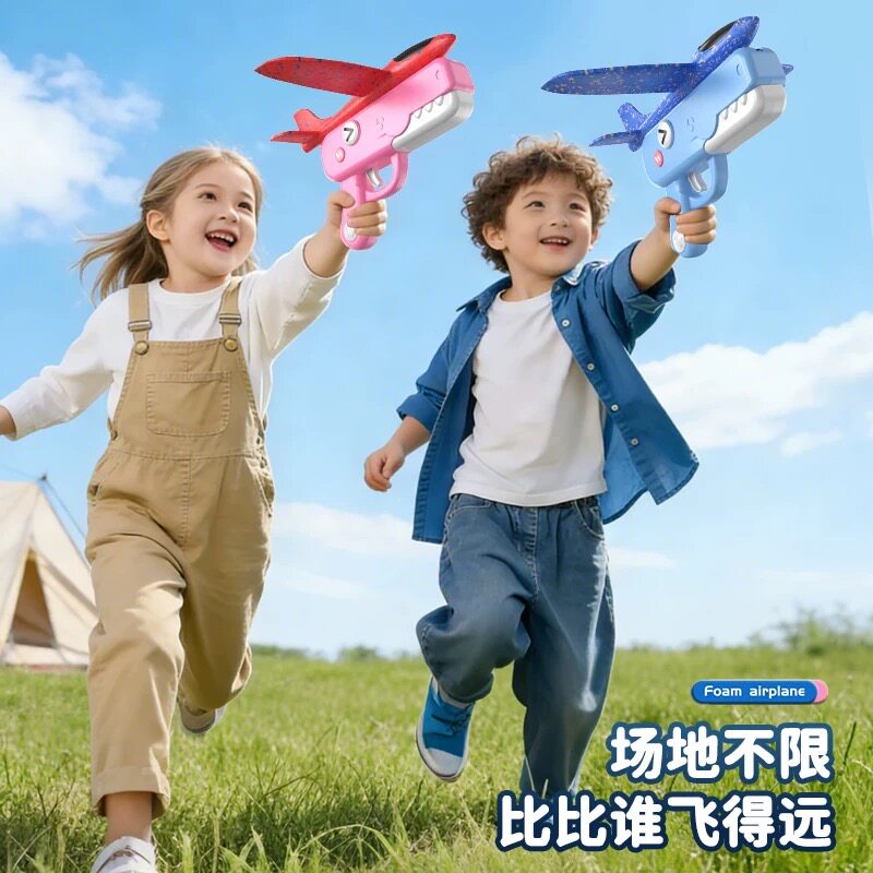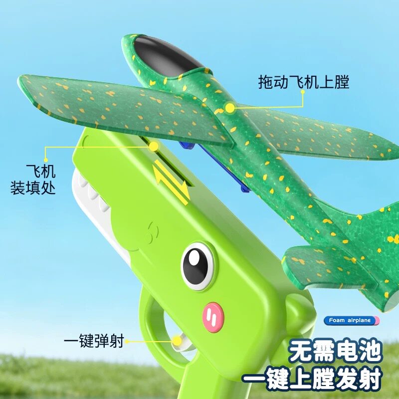 呆萌恐龙泡沫飞机枪耐摔户外玩具手抛滑翔男孩女孩儿童弹射玩具枪