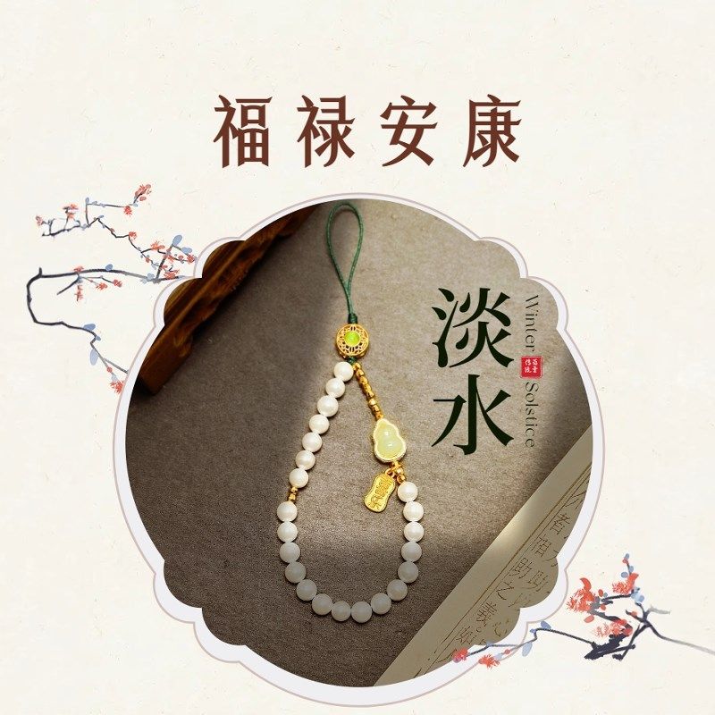 天然珍珠手机链挂件手腕挂绳小清新绿色高级文艺温婉女手机挂饰礼