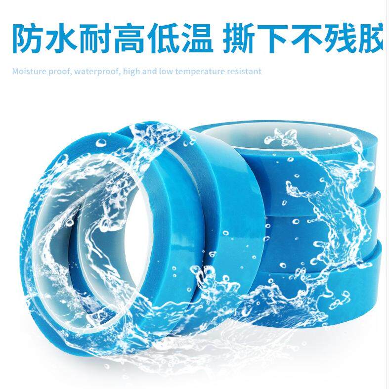 批发PET蓝色冰箱胶带 蓝色半透明无痕胶带 冰箱空调打印机固定封边无痕胶带 中粘性不残留临时固定胶带