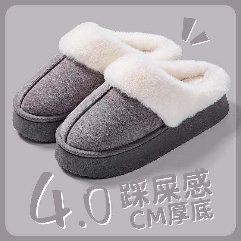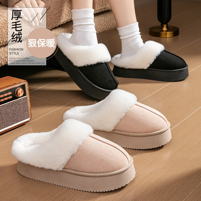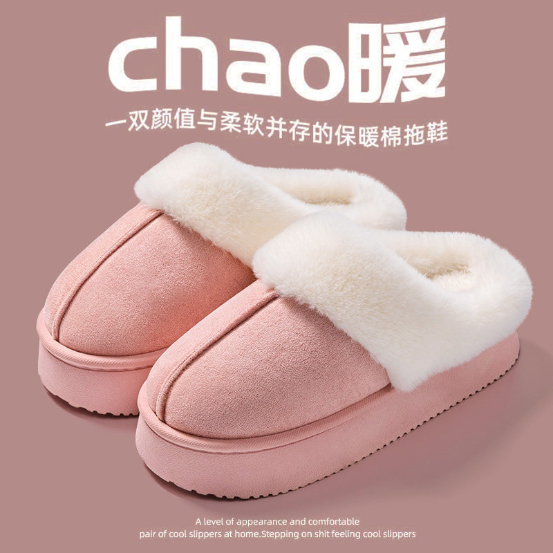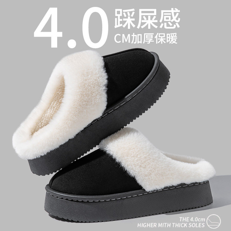 2026新款翻半包跟棉拖加绒保暖情侣外穿毛毛绒厚底防滑居家棉拖鞋