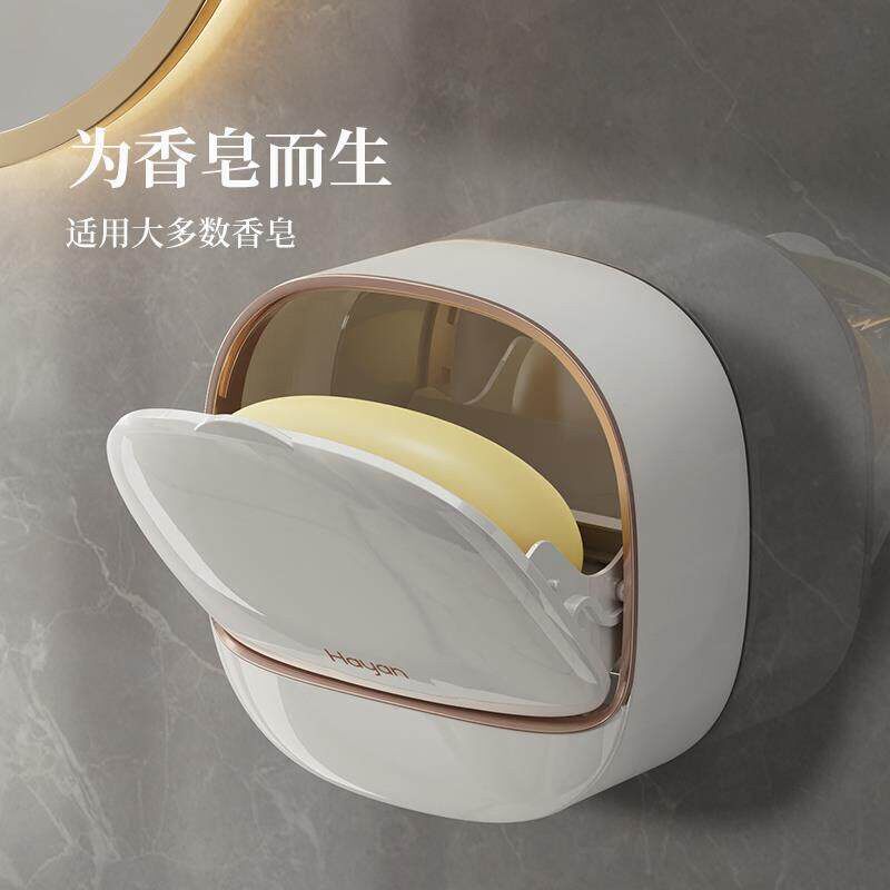 香皂盒免打孔壁挂式家用肥皂盒高档沥水带盖子化妆室香皂置物轻奢