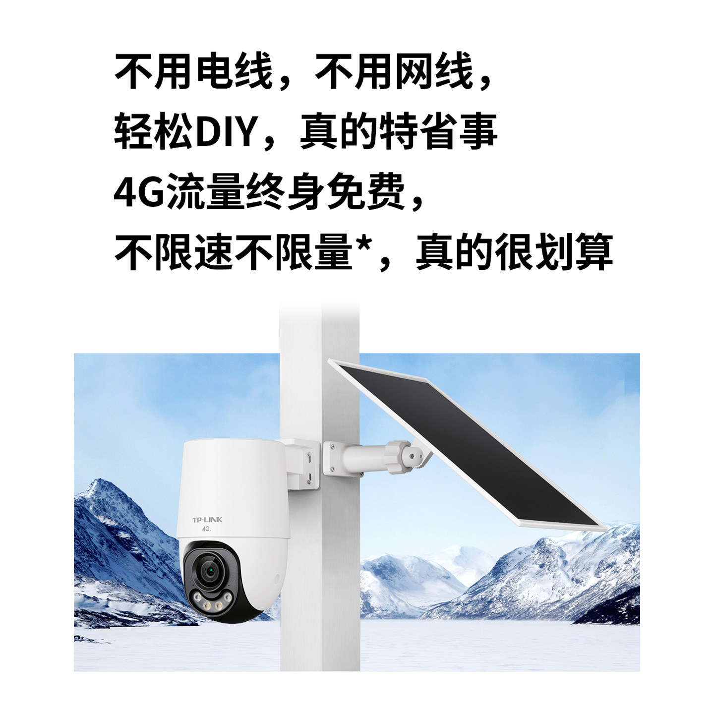 TP-LINK太阳能监控摄像头4G不限速无限流量户外太阳能供电600万像素内置麦克风双向云台网络摄像机手机远程
