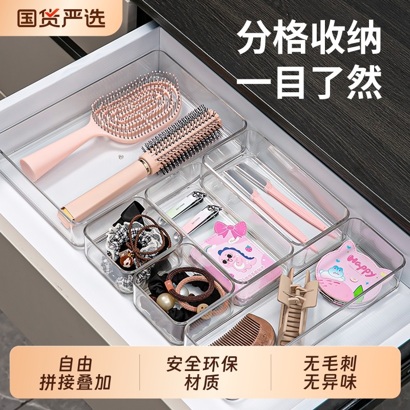 抽屉内置收纳盒加厚分隔分格首饰化妆品置物盒塑料透明杂物整理盒